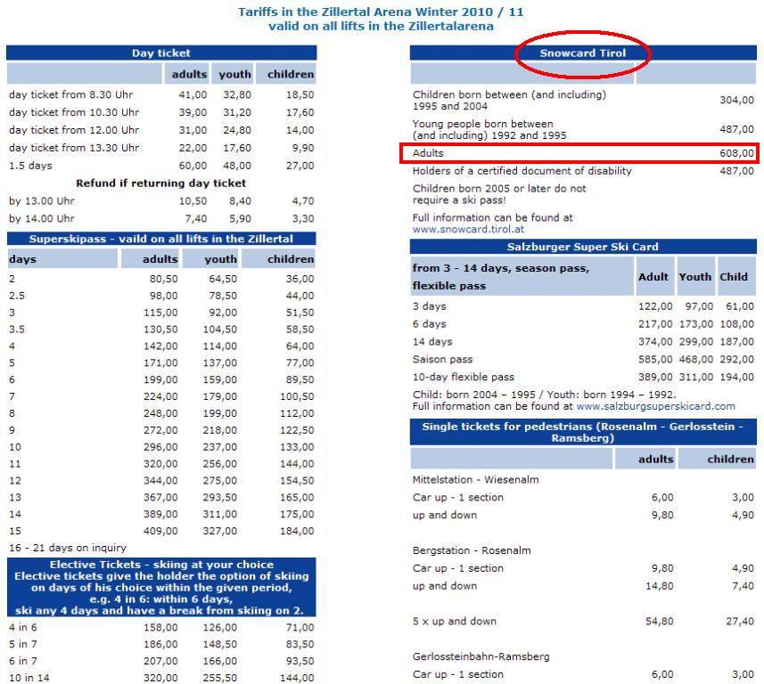 Про единую цену по Тироли тоже впервые слышу, но спорить не буду. Зато о сравнении Китцбюля и Шладминга поспорила бы. На мой взгляд, в сравнение не идет.