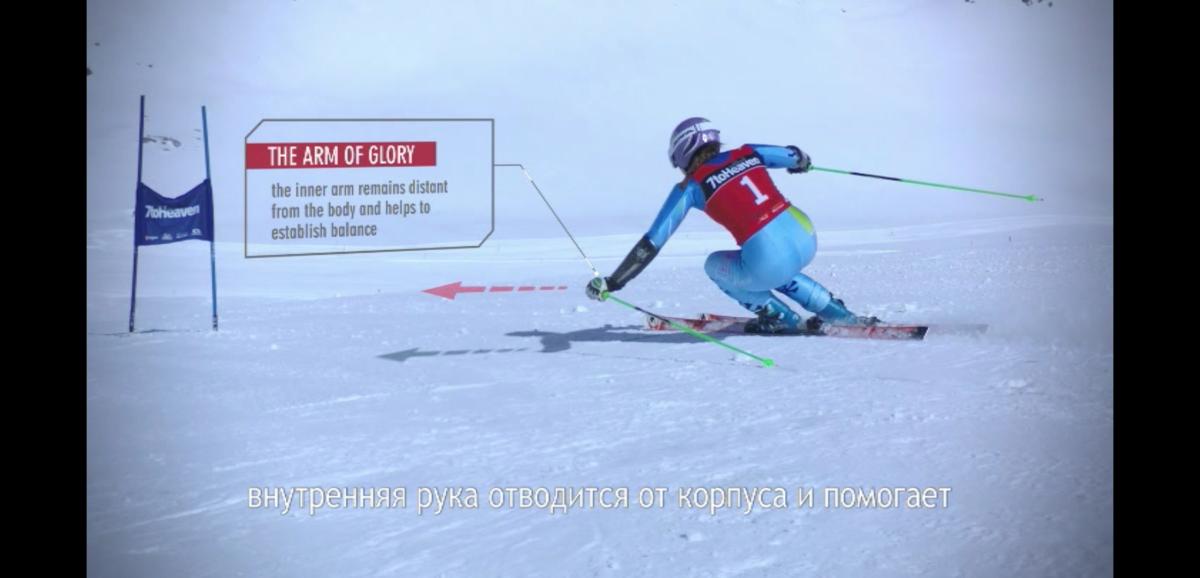 Нет никаких секретов. Картинка из кино про Тину Мазе, где она говорит о движении рукой внутрь поворота , что позволяет ей легче инициировать этот самый поворот и закантовать лыжи на необходимый угол. На трубе - японцы обсасывают технику движения внешней руки для придания ускорений и говорят о том, что этот "мифический секрет" помогает выигрывать гонки.