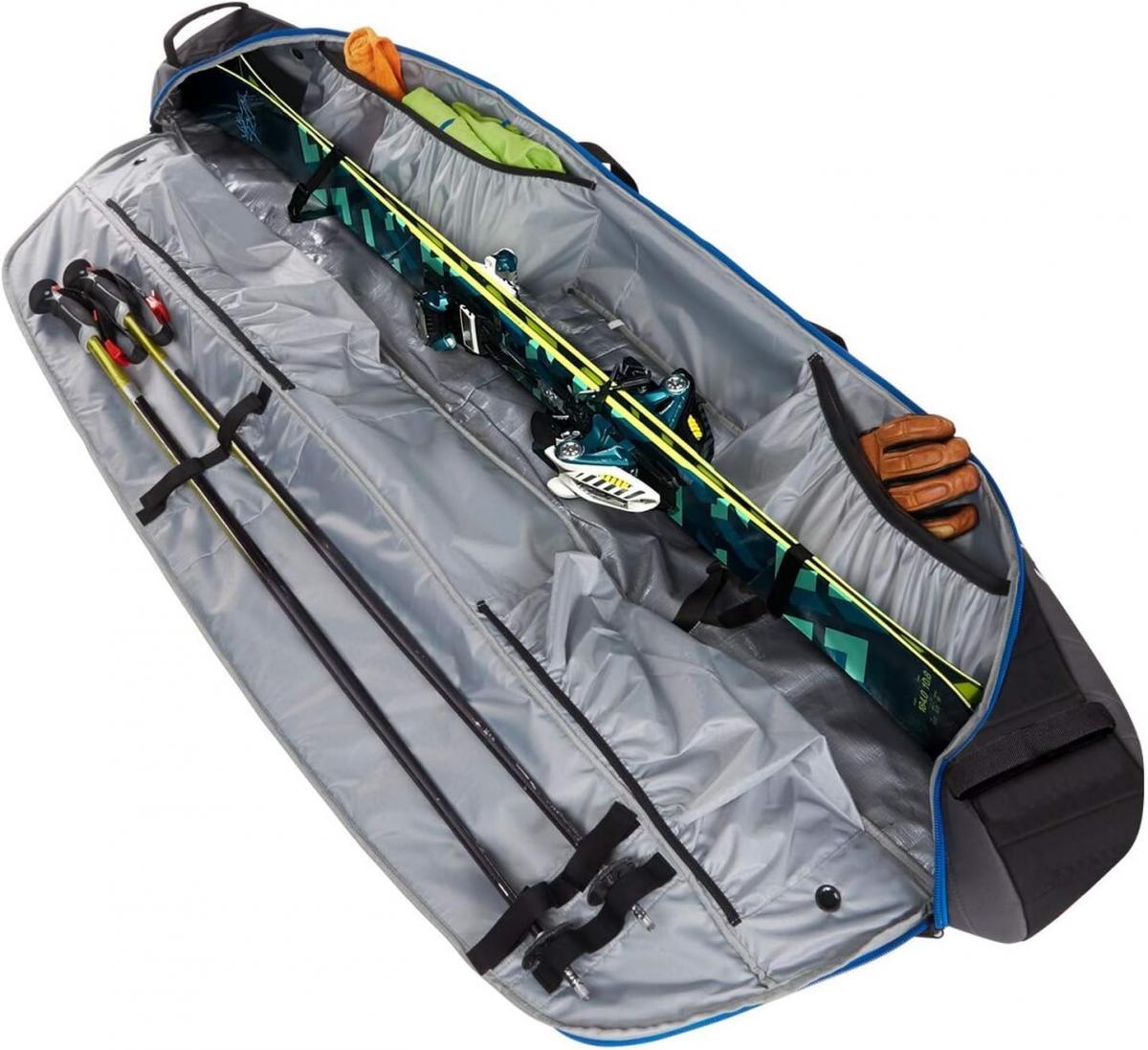 У меня в точно такой же чехол Dakine помещаются лыжи до 192, палки, удлинитель на 3 розетки, камус, кроксы, верхонки, перекус на неделю скитура, массажный мячик и кое-что еще. Единственное пожелание к производителю с моей стороны - поменять одну прямую молнию во всю длину на способ открывания типа "конверт" (как на картинке). Но Дакайну виднее.