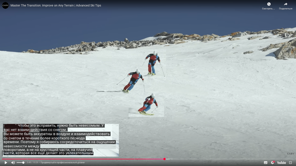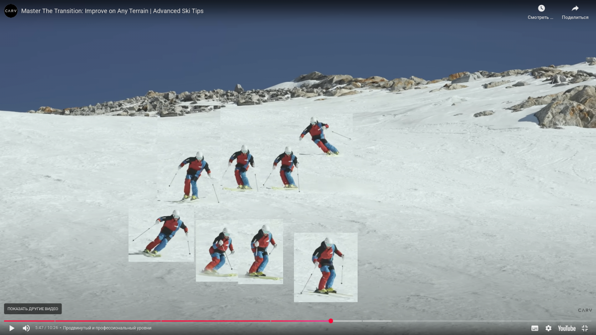 Вот что мне нравится. так это работа внутренней лыжи. Надо бы научиться так же ею работать. Иногда получается, но редко