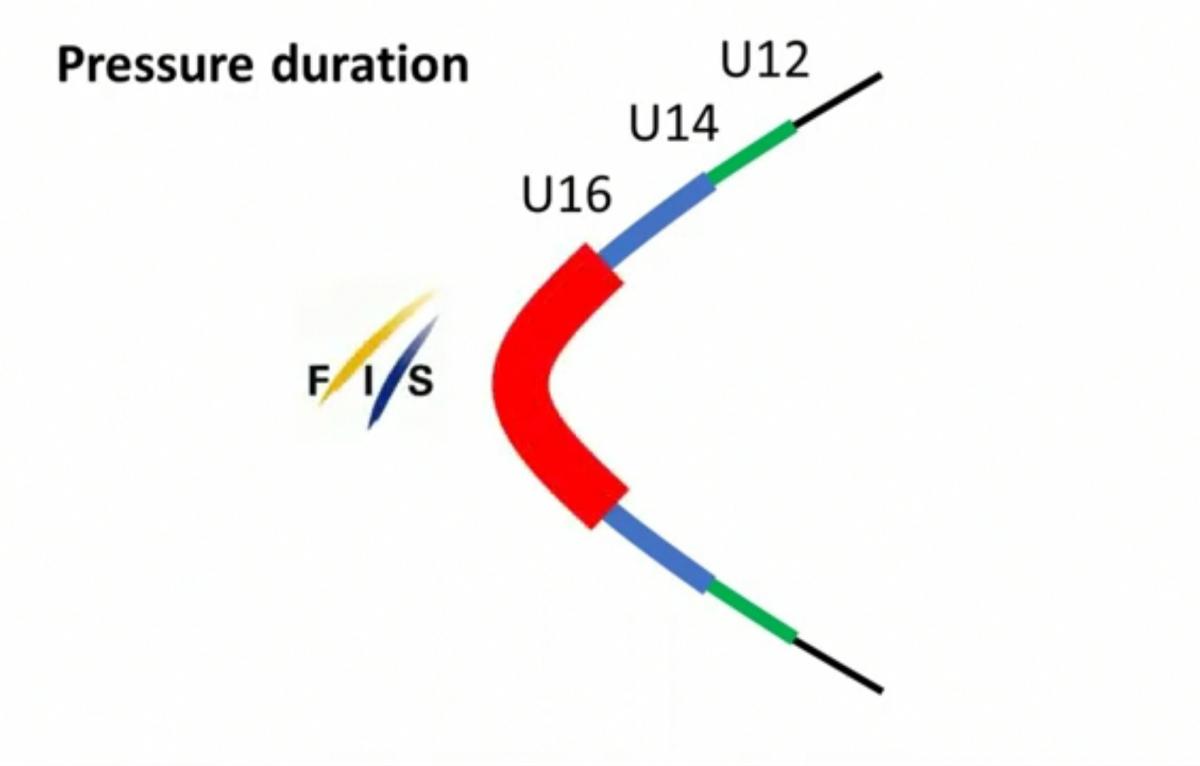 Видно что хорошее владение лыжами предполагает умение вести дугу с радиусом близком к минимальному для данных условий, т.е. на близких к максимальным углах закантовки но это не все, второе базовое умение - производить переход из дуги в дугу или перекантовку за минимально возможное время. Конечно это время не может меньше некоторого необходимого, это очевидно, но все равно оно должно быть по возможности минимальным.