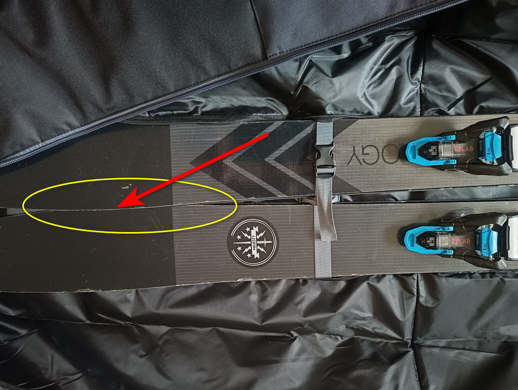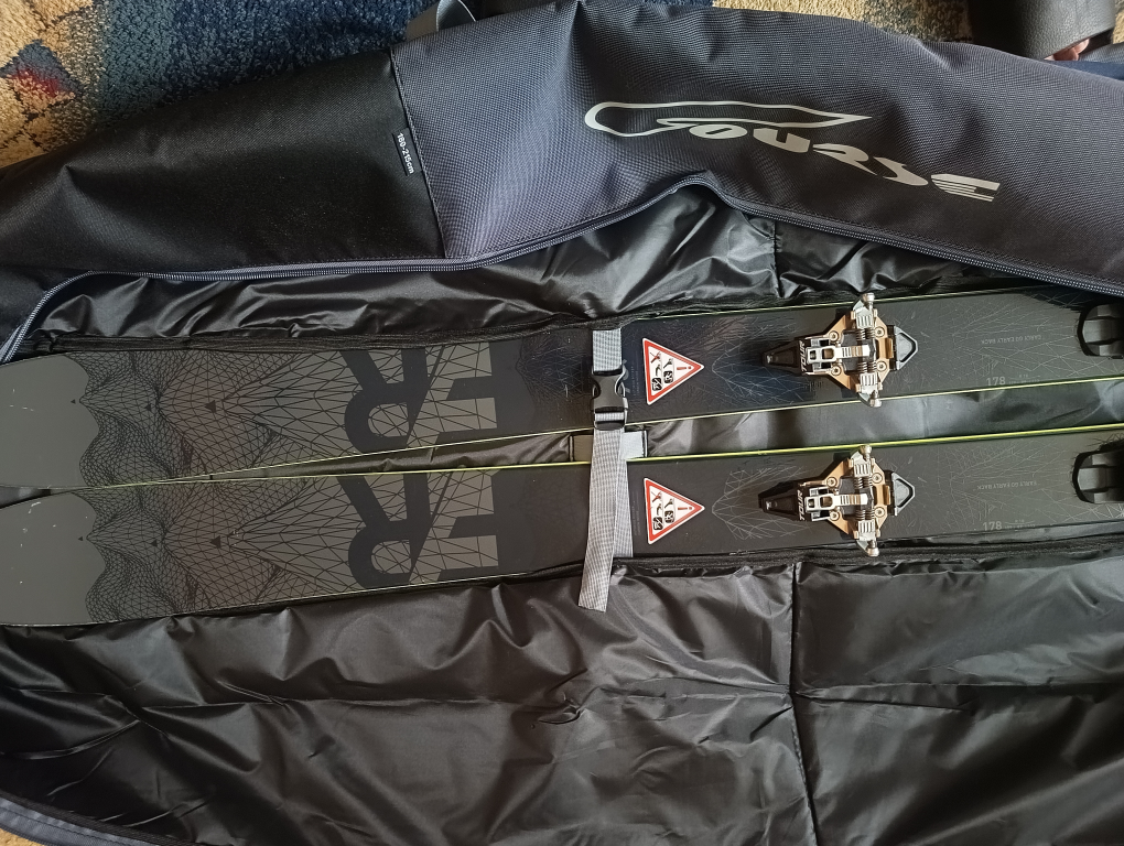 минус, лично для меня, - чехол не для широких лыж. лыжи-то я впихну, но придётся потанцевать, что-то придумать, чтоб друг друга в районе носков кантами не цепляли. на фотке место указал, задники легли нормально. лыжи в талии 115 мм, в районе носков 142 мм. лыжи поуже, 90 мм в талии, ложаться вообще хорошо. фотки прилагаю.