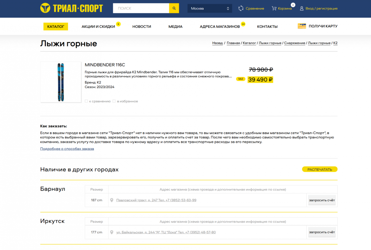 Раньше нужно было связаться с магазином, получить от него подтверждение наличия товара и счёт, оплатить счёт, связаться с магазином и сообщить об этом, связаться с транспортной компанией и заказать доставку и курьера в магазин , связаться с магазином и сообщить о курьере. Сейчас же под ценой появились следующие строки: