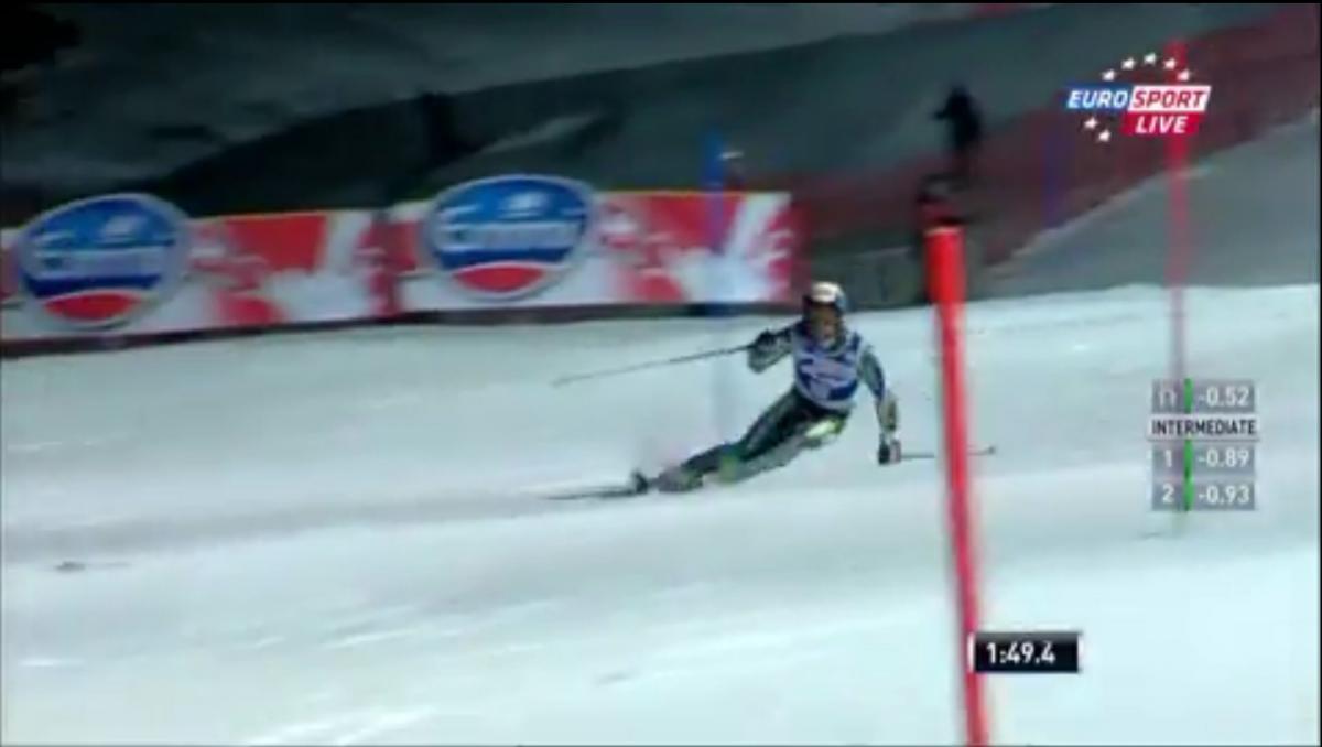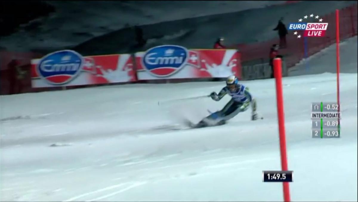 А что он делает то? Выход из поворота, переход в следующий, корпус идет прямо, ноги с лыжами дальше по дуге.
