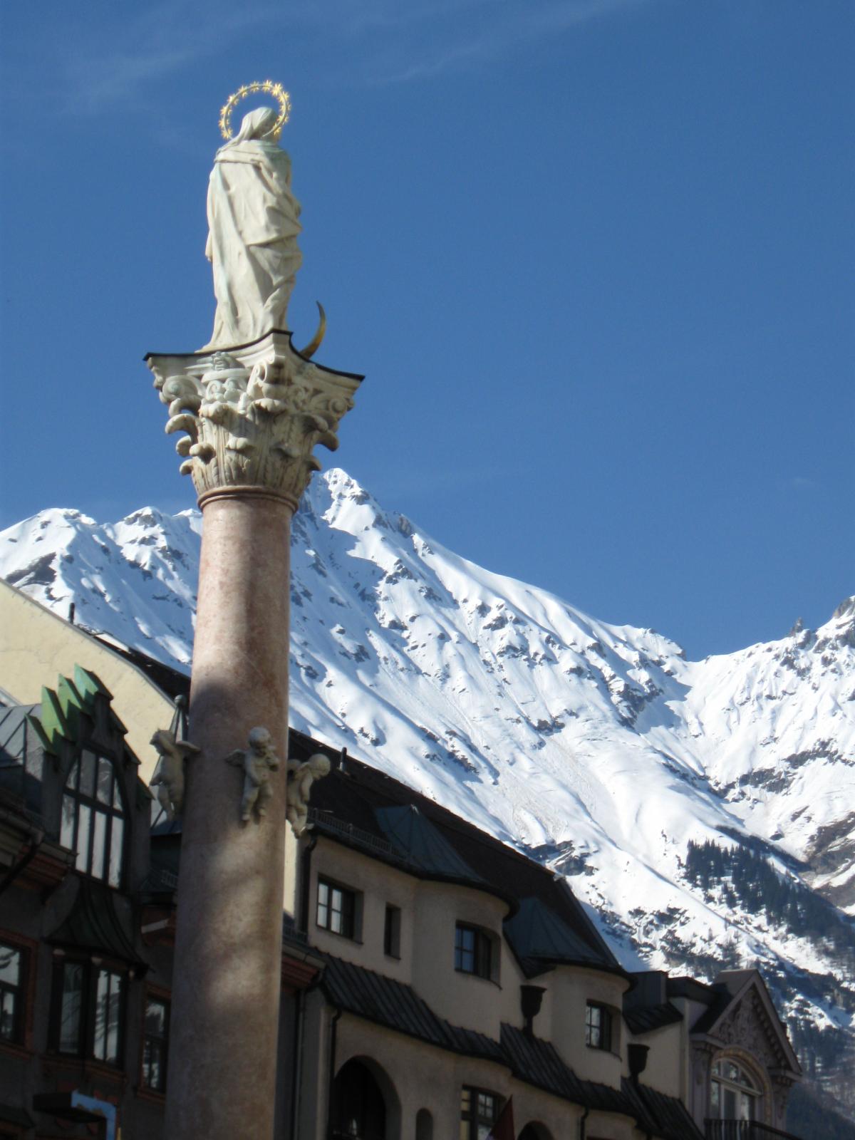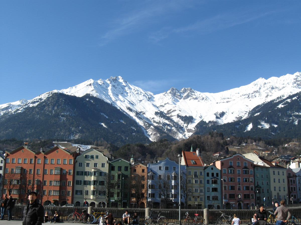 я была в Инсбруке. Город вытянулся в долине вдоль реки, смесь старой архитектуры и урбанизированной застройки.