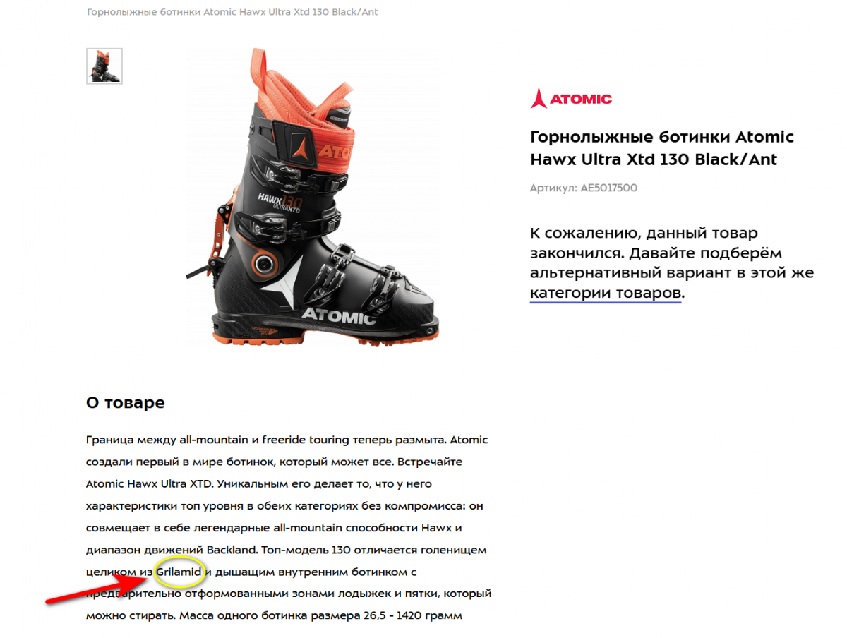xtd 130 целиком из гриламида были. У меня xtd 120 были-они целиком из пу.Да и на той картинке он указан как материал голенища, а не башмака. То есть, он был, но не в формуемой зоне