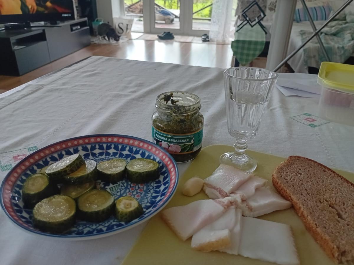 Это даже в процессе готовки, тем более, что сало и малосольный огурчик поспели раньше![]()