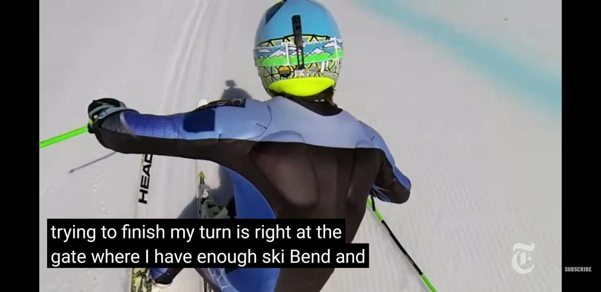 Надо разделять завершение поворота и следующий поворот. Тед говорит про завершение: после апекса он «отталкивается» внешней и «делает шаг» на внутреннюю, то есть, переносит на нее остатки веса, причем пока она еще на старом, внешнем/верхнем канте, и затем , перекантовывая ее, получает “very fast transition”. Это - то, что Харб называет oOne-Footed Release. Как и когда он в новом повороте загружает лыжи - вопрос отдельный. Характерное положение в конце поворота можно у многих гонщиков поймать - старая внешняя чуть приподнята, внутренняя - касается снега своим внешним кантом.