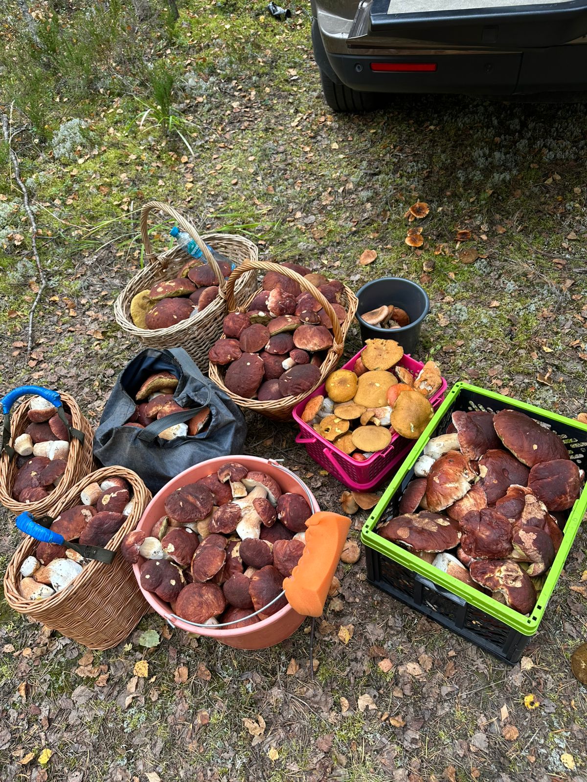 На Урале полно грибов. Набрали 2 ведра отборных белых ну часа за 2, неспешно так. А можно было бы мешок набрать. Причем остальные грибы, типа маслят, сыроежек и прочее даже не собирали, под ногами только мешались))Вчера заехали туда на разведку - ни одного гриба, ни одной машины, ни одного человека.