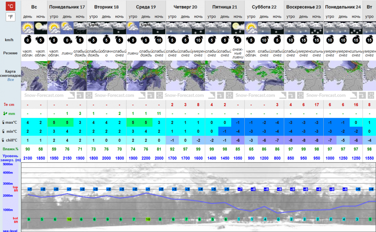 Как и прогноз на гавносайте от Сноуфоркаста.