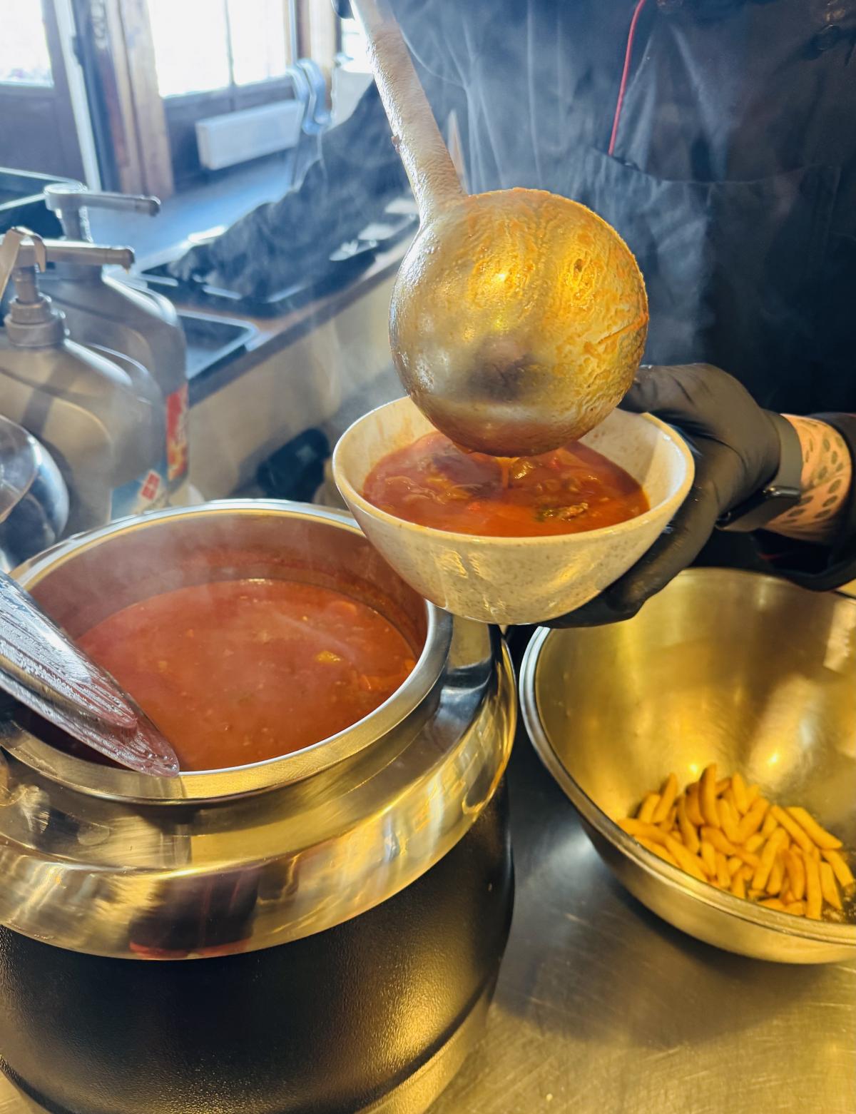 Если хочешь сравнительно недорого перекксить и попить чаю не из наперстка, совету здоровенный сарай в окружении зеленых трасс, правее Фунителя , если смотреть снизу. Там около десятка кафешек и столовых на разный вкус. Но без изысковХэ/Зэ… может и оно..