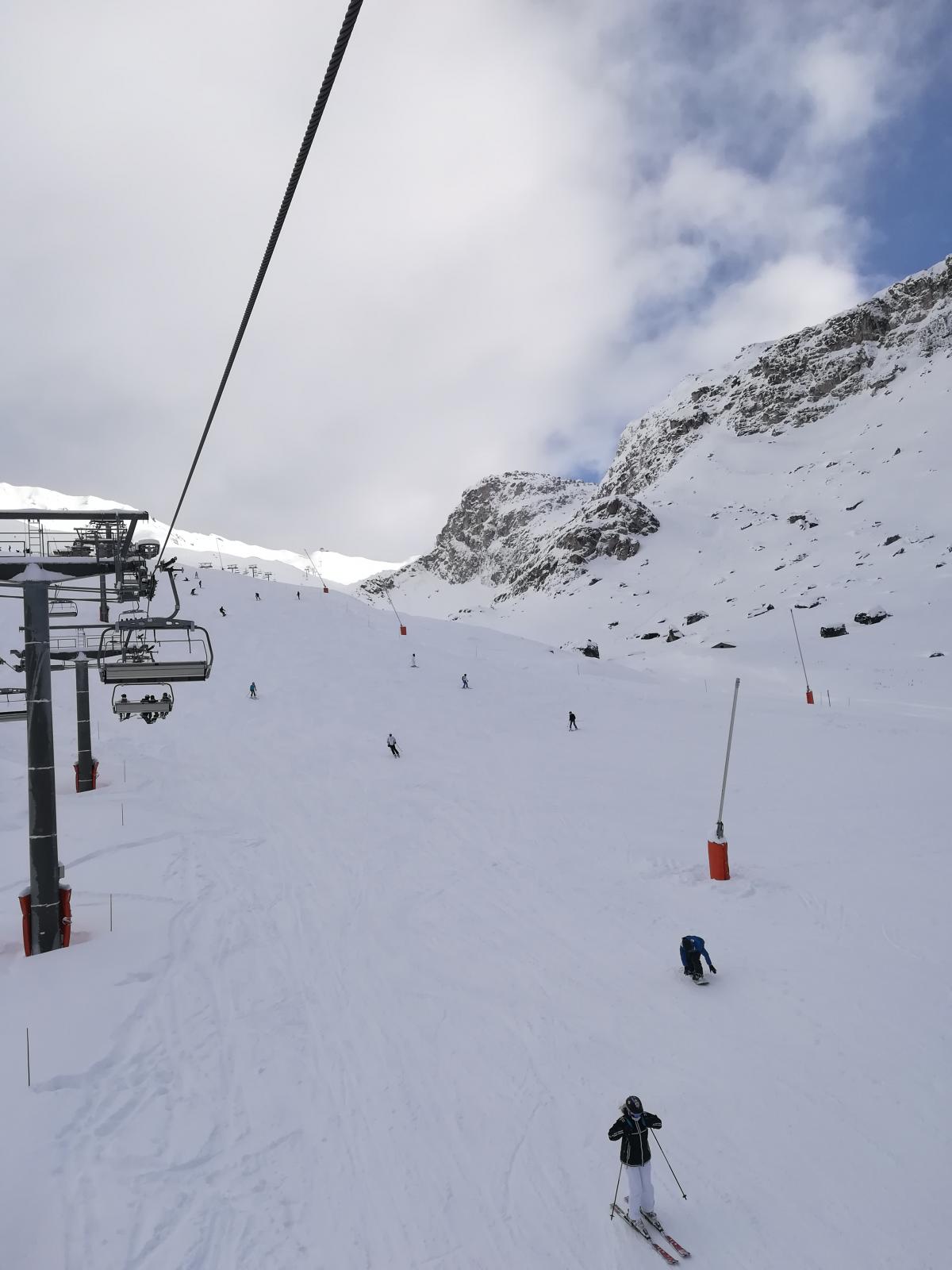 После 10 рассасывается все и там уже можно выбирать нормальные маршруты, где нет пробок. С 7 по 10 еще народу прилично. Если не ездить на южный склон, то кататься можно. Обычно район Обера (дриада, тундра, дафна) менее загружен.