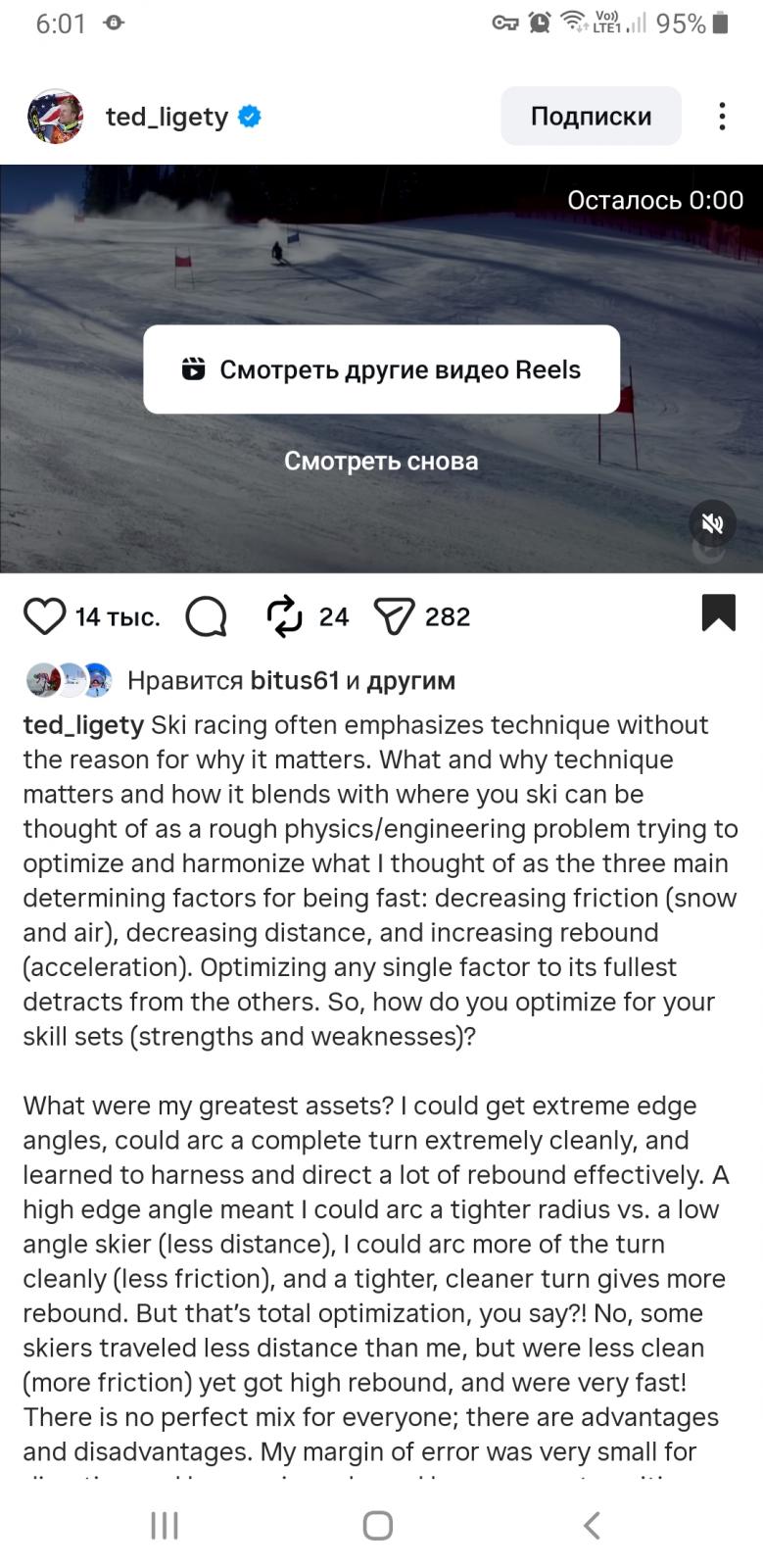 Не знаю кто такой ТД (ТеД Лигети?), но на форуме очень любят рассматривать картинки крутых лыжников и говорить как сделать также. Но пока еще никто не сделал ))У него попадался рилс где ТД говорит ровно то же самое, что Валера, только На английском