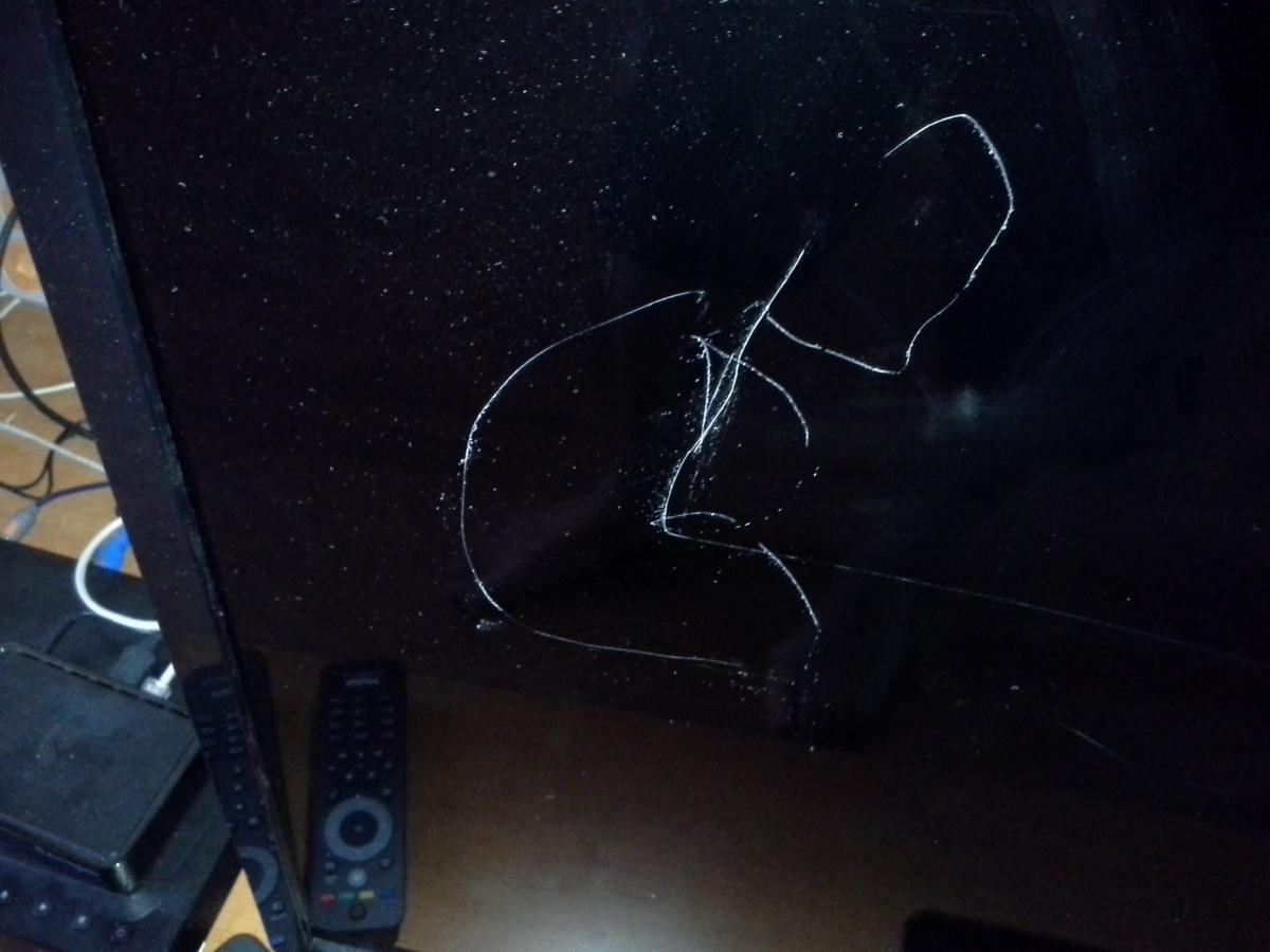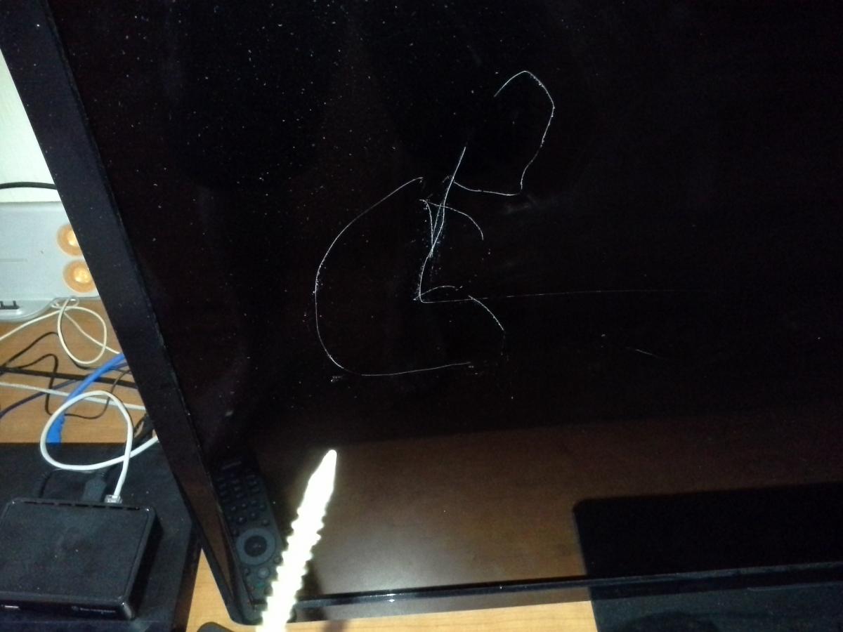 ...Мальчуган гвоздиком начертил на телеке...