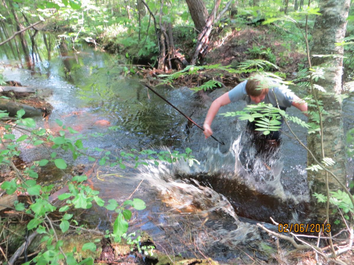 Достаг градусник, бросил в озеро. Подержал 10 минут.