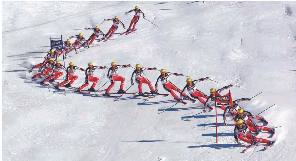 А можно на этой кинограмме ткнуть в то место где имеет место это опускание плеча? Наружного плеча к внутренней лыже как выше было написано. Как вообще можно опустить наружное плечо к внутренней лыже и куда в это время идет внутреннее плечо?
