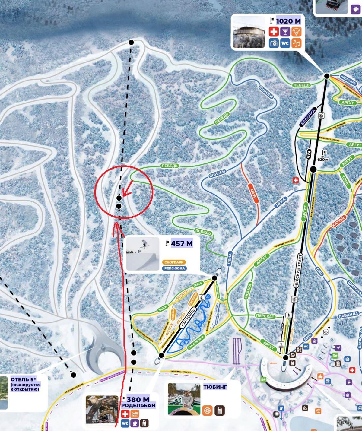 Так уж писал где то тут и фотки стройки выкладывал. Это по карте левее трассы Лебедь, куда новый подъемник из поселка через озеро тянут: