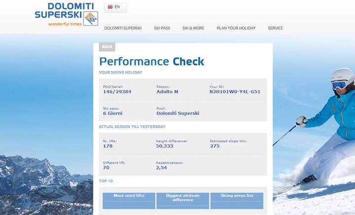 Вот скриншот сегодняшнего катания с сайта dolomitisuperski.com /Skipass ), 3 часа 45 минут с утра, без пауз, т.к. одна каталась Selva VG: