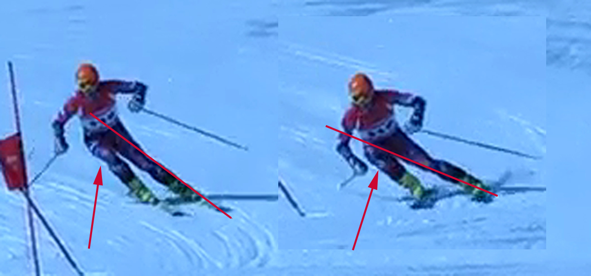 Это и есть у топов КМ то "неправильное", против чего выступают религиозные фанатики книжечек и положняка. У флага в слаломе часто приходится бедным топам сильно дать внешним коленом вперед и к склону: дорезать и максимально укоротить радиус. А фанатики скажут, что Х. Пусть ... говорятХочу обратить внимание на то, что у Рокки сгибается даже ВНЕШНЯЯ нога на 4 нижних кадрах