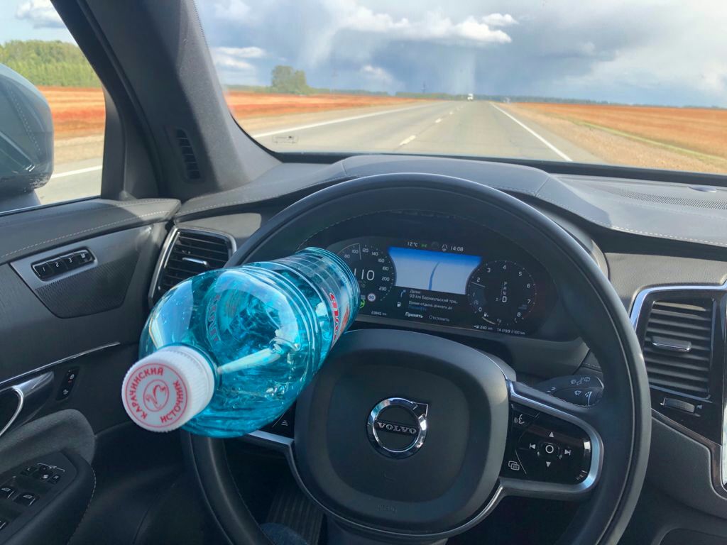 У меня так братик на халявной от представительство Вольво на Алтай гонял. Бутылка в руль для работы их системы и руки с руля.Ну а в третьих - это была не моя машина