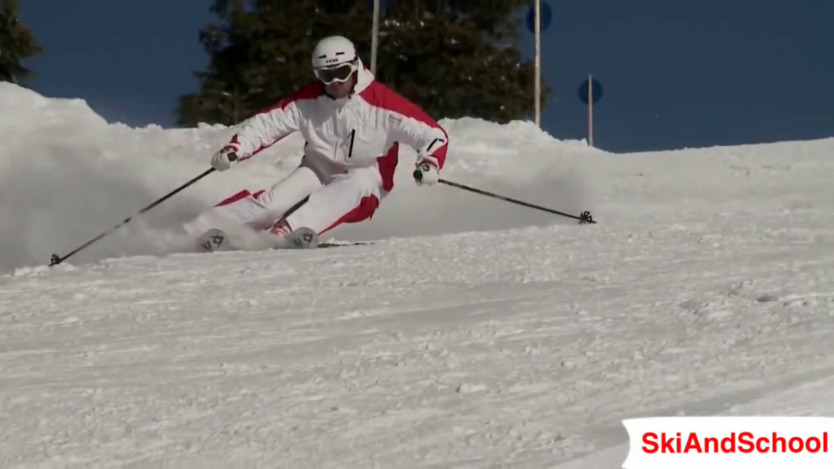 Демонстратор специально утрированно на скорости 3 м/с показывает как новичкам начинать правильно резать не имея навыков спортивного поворота и не обладая теми возможностями о которых писалось выше про ловкость спортсменов. Первые шаги позволяющие не закатать завал на внутреннюю и оттопыревание ее вперед . Если его начать разгонять то он и корпус начнет наклонять. У вас бзик реальный вы не понимаете что то что предлагает ГГ это техника с потенциальной массой проблем связанных с дестабилизацией корпуса. И тезис о стабильности корпуса о котором говорят практически все спортсмены вовсе не означает что корпус должен стоять перпендикудярно склону. Хватит разглядывать углы слома на раскадровках с WC ничего вы там не увидите. Надо просто поверить что против природы не попрешь (не будет резать лыжа когда в нее давят сбоку, не будет быстрей перекантовка когда внутреняя на полметра впереди внешенй не надо махать руками как крыльями в каждом повороте для получения продольного баланса доставая себя с жопы) и это все ГГ с его стрункой и сгибанием в пояснице больше он ничего нового не сказал а ваше хваленое продвижение в том определении которое вы даете это и есть стабильный корпус о котором пишут спртсмены и ГГ вообше тут не причем примазался к базовой технике только вы это продвижение начинаете с разгибания новой внешней поэтому что бы не сесть на жопу надо либо руки вперед либо раком встать а спортсмены его делают в полете с прямым корпусом за счет импульса .Почему это?
