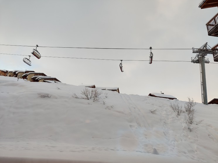 Вот, кстати, утреннее фото убогой архитектуры бетонных коробок 1970-х: Plagne villages и Soleil![]()