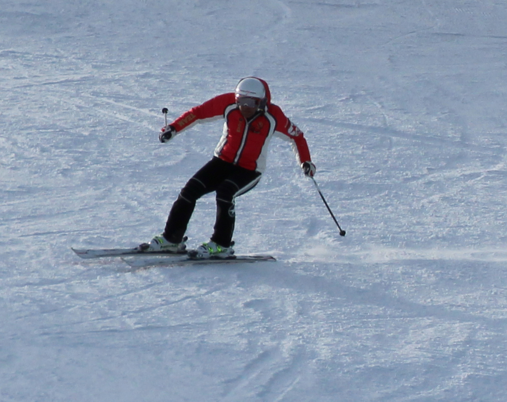 Просто конечно правильнее начинать поворот, когда лыжи таки смотрят вниз, а не впоперёк склона. Вот для этого очень даже интересно развернуть лыжи вращением в воздухе, как бы перенаправить их носками вниз, из положения перпендикулярному линии падения склона. И тутже зарезать кантами. как тока лыжи коснулися склона..