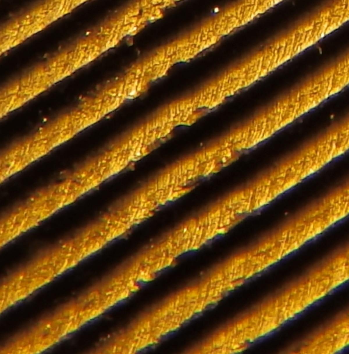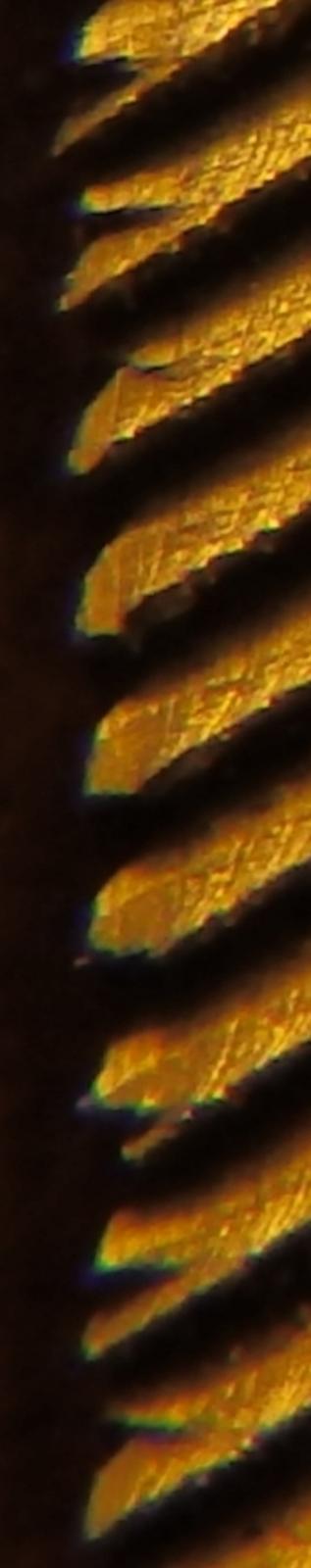 крупным планом. При угловом положении при заточке. Всего несколько проходов.