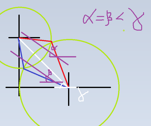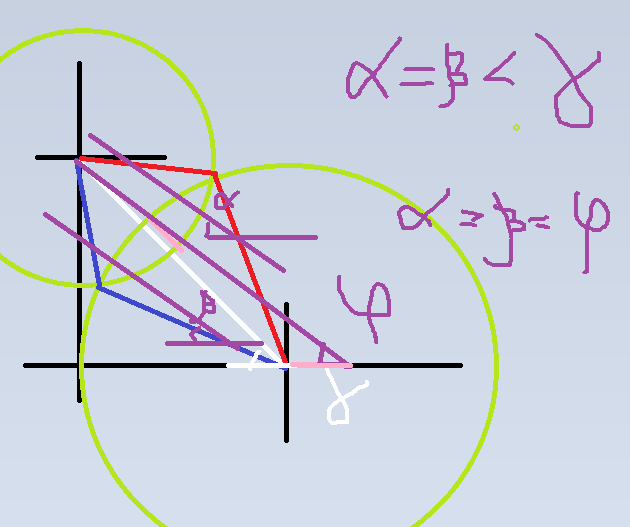 А вот красные и синие линии одинаковые по длине у них средний угол одинаков.