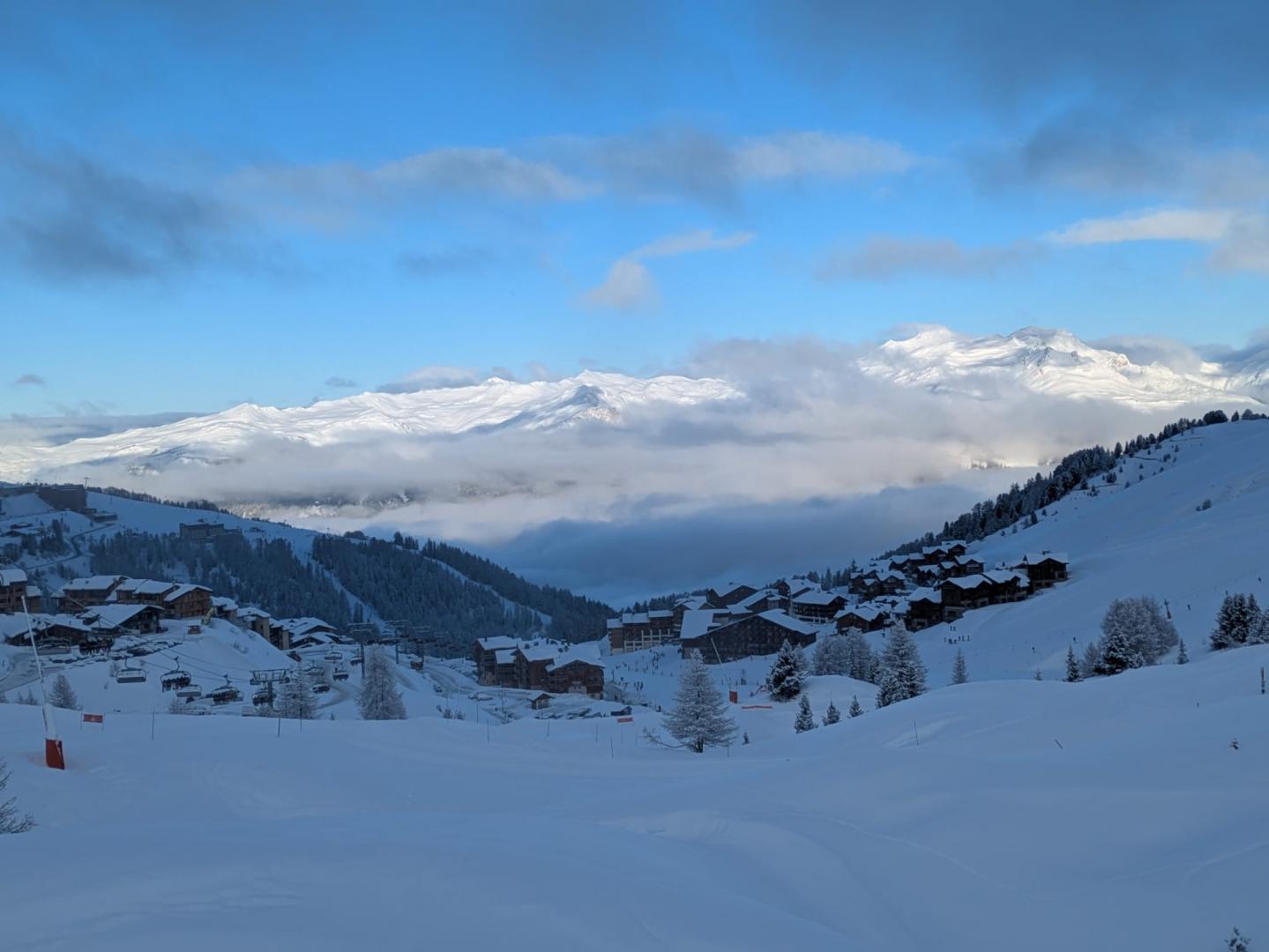 Вот, кстати, утреннее фото убогой архитектуры бетонных коробок 1970-х: Plagne villages и Soleil