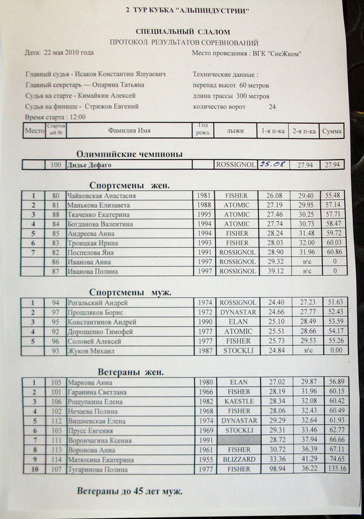 Возраст спортсмена устанавливается по числу полных лет на 01.01.10 (данные паспорта).