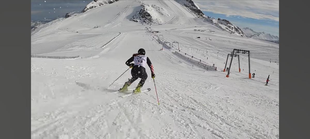 Лопни мои глаза, но правая лыжа начинает обгонять левую в следствии того что левый тазобедренный сустав вместе с разворотом корпуса продвигается вперед здесь против часовой стрелки и разгруженные лыжи маятниково пролетают под корпусом в новую дугу.