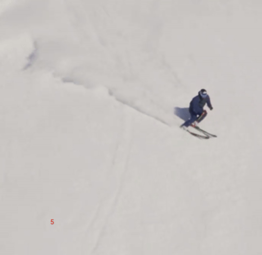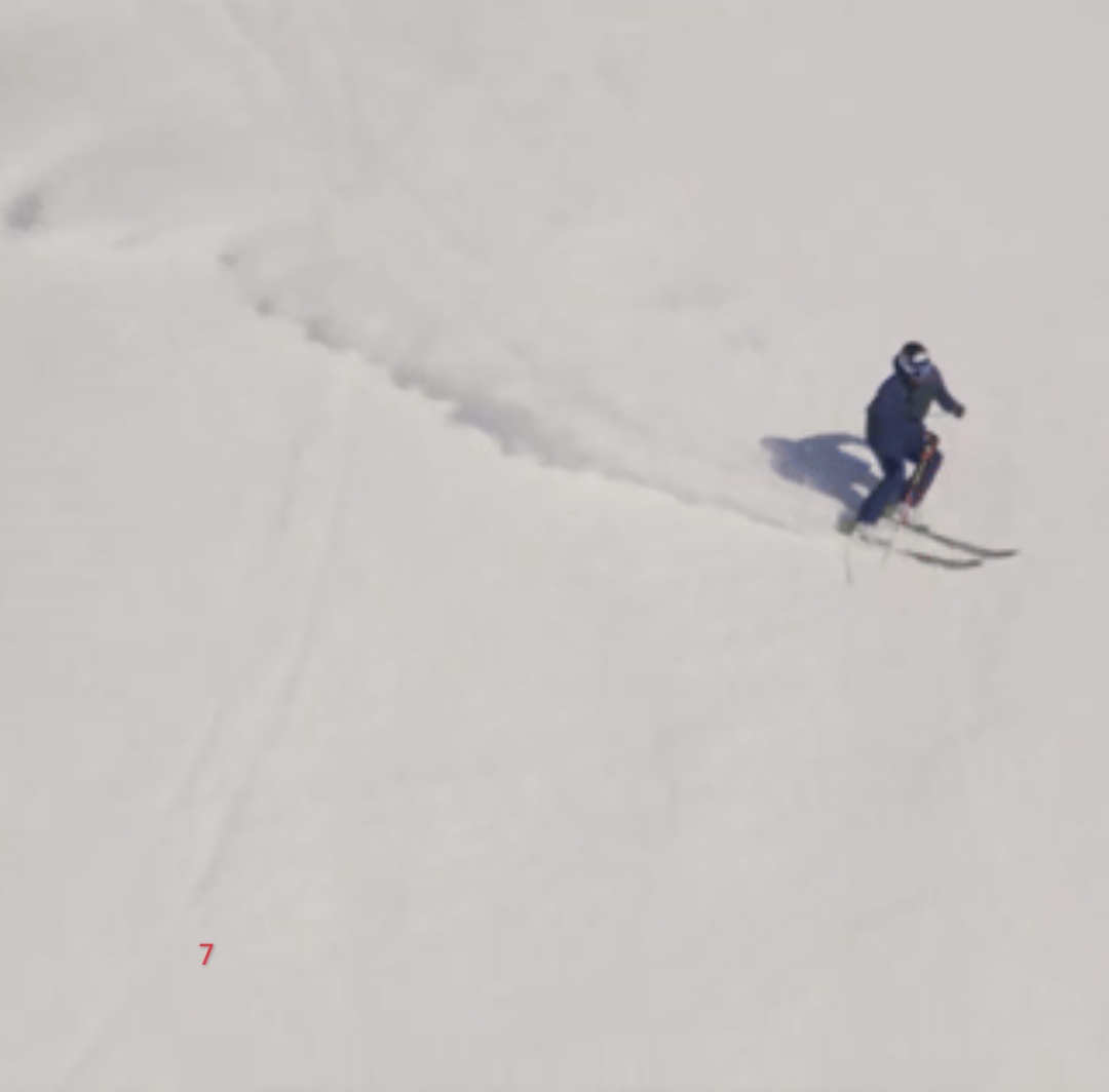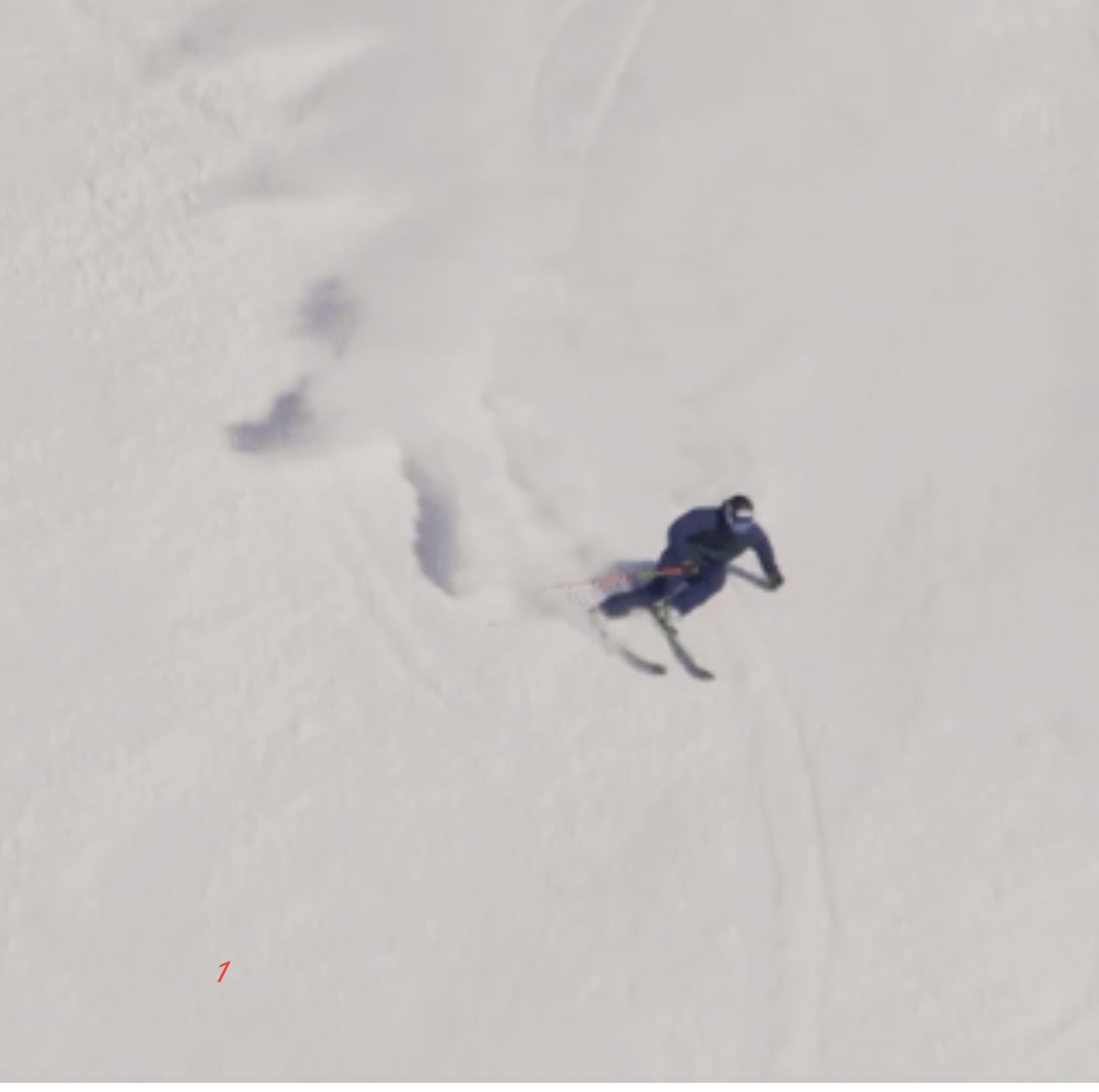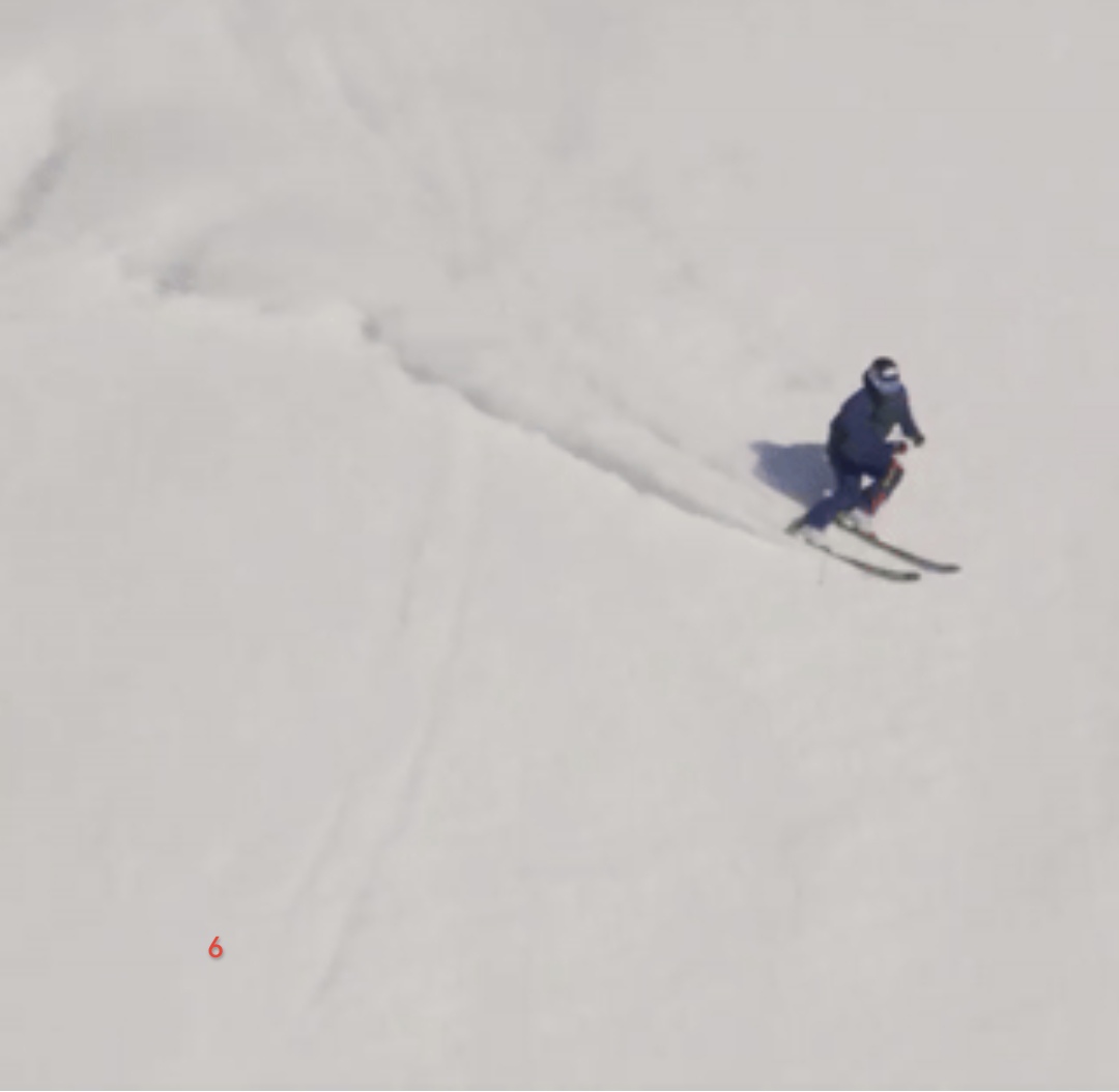 а вот левая не просто разгружена, а удерживается, иначе стрельнула бы уже во внешнюю если бы внутренний кант с носка цепанулт снег.