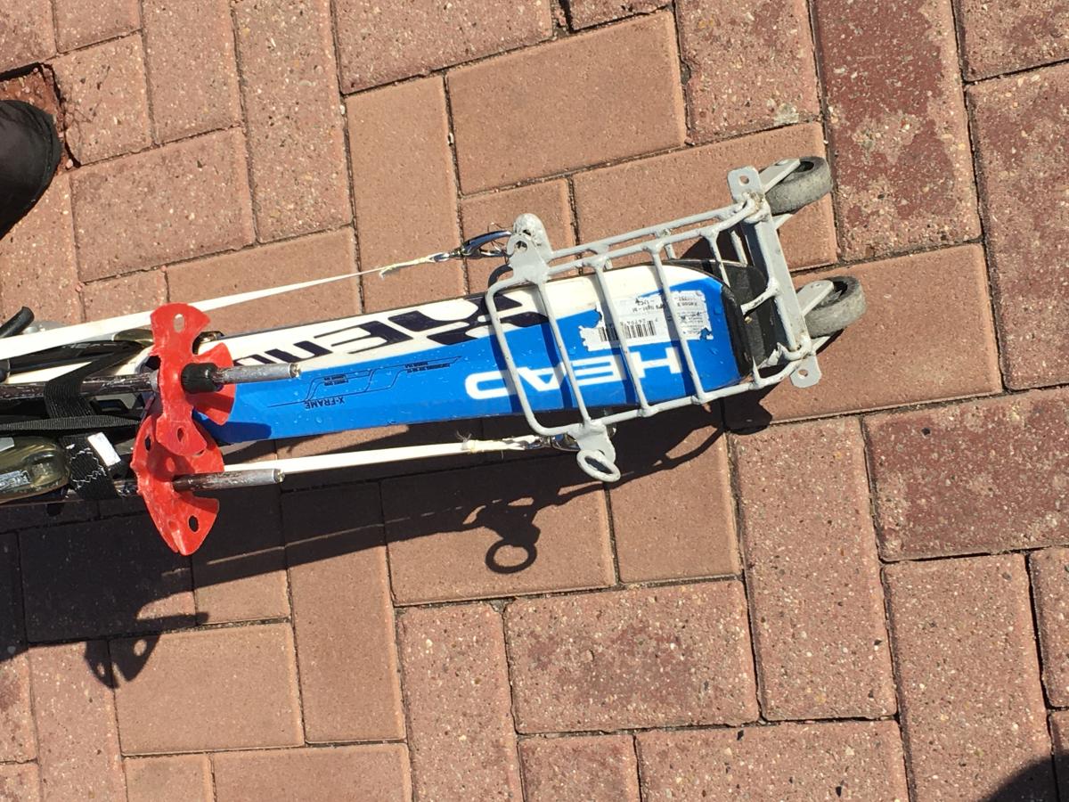 Очень клевое изобретение. Очень удобно таскать лыжи и много чего еще. Интересно как оно работает и где его можно купить. Если бы сделать пласмаствую такую фигню и полегче ей бы цены не было бы. Но я бы и такую купил бы. Удобно лыжи таскать по любой городской инфраструктуре. Е ли честно то первый раз вижу настолько гениальное решение. Браво бабуле которая это изобрела и сделала, опережив китайцев и других азиатов.Там раздевалка есть, где можно оставить под скамейкой. Или прикопать в снег до возвращения.