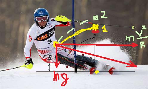 Виталь!А по поводу сил тут тоже все не верно. Даже с точки зрения физики не перекинет, на фото Райх идеально сбалансирован над внешней лыжей (это средння часть поворота). Вы просто ошиблись с точкой ЦМ. Я думаю что Райху веднее где у него центр масс