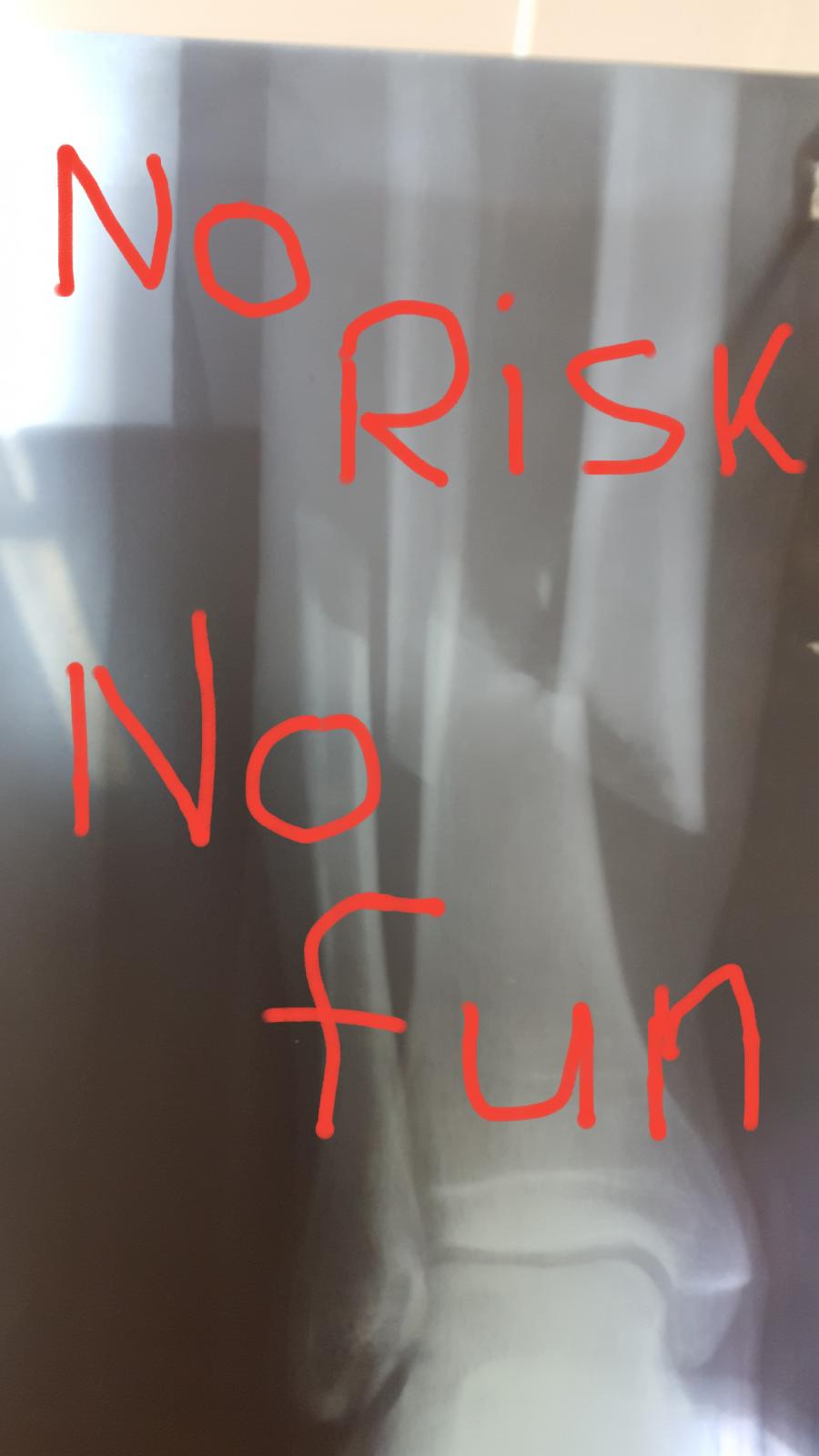 Мой муж и без риска справился ... споткнулся б..дь, дома. Две недели вот прошло. Надеюсь до зимы снова топать будет...