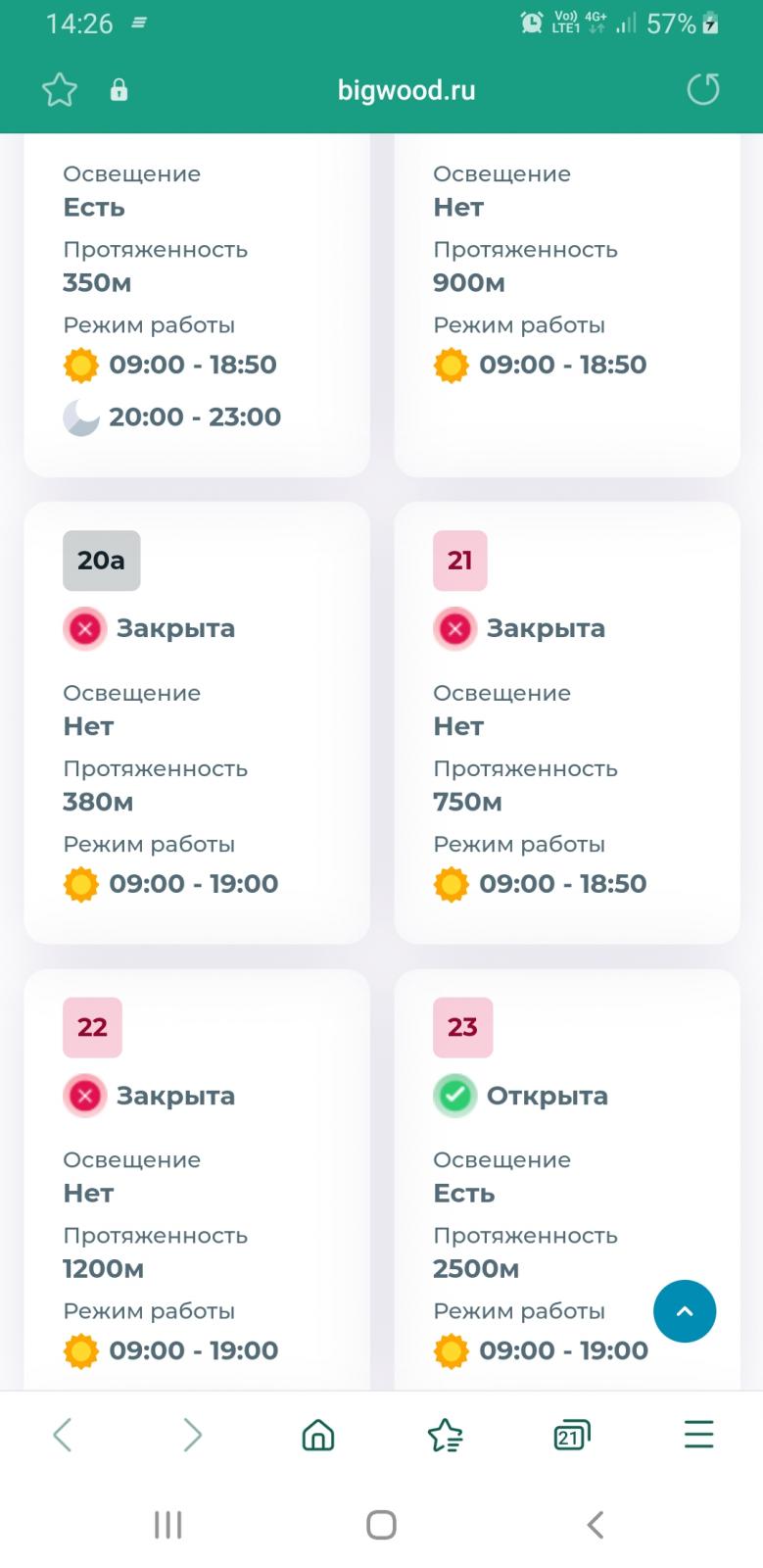 Да, в конце марта, в прошлом году вообще ближе к апрелю только открыли. С точки зрения катабельности - 23, 22 - нормальные трассы (красные), на перегибе там обыкновенно стоит куча задумчивых лыжников, типа, не спуститься. Тоже открывают ближе к концу марта. На 20(а) без 20 не попасть, так что 20, видимо, тоже в списке катания. 16 - прекрасная трасса, но там очень часто лёд, не так чтобы прямо приятные ощущения при спуска. Нормальные 4 и 6 черные на юге, 3 красная там же. Нормальные на Бигвуде трассы. Вельвет долго держится, готовят хорошо. На чёрных пусто. А вся критика по поводу легких трасс, ну такое. На всех более или менее крутых спусках там пусто, даже когда очереди на подъёмники. По мне так самая небезопасная трасса - это синяя вдоль подъемника на севере, особенно, если спуск заканчивать по ней, а не по 16 черной.