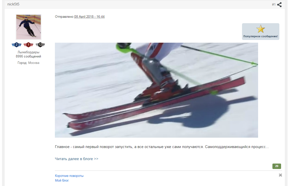 ОН решил сначала опубликовать статью ЗДЕСЬ,значит - был интерес, и только после обсуждения Здесь, ОН перекинулся на скигуру, после личной просьбы Битуса, который заинтересовался статьей. Статью читал. Принципиальных возражений нет, кроме подачи материала(Здесь) и ссылками на личное катание в снежкоме.