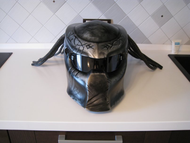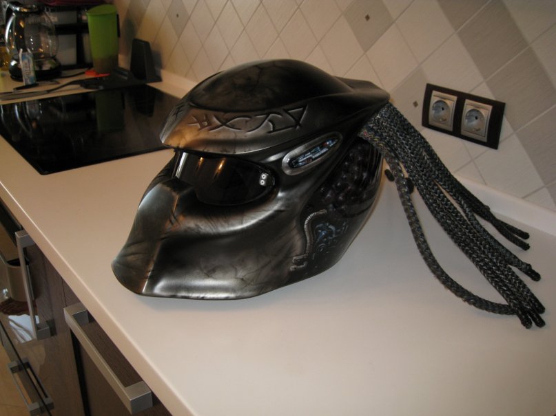 И вот в таком шлеме. 254 км/ч не получится, но фурор гарантирован