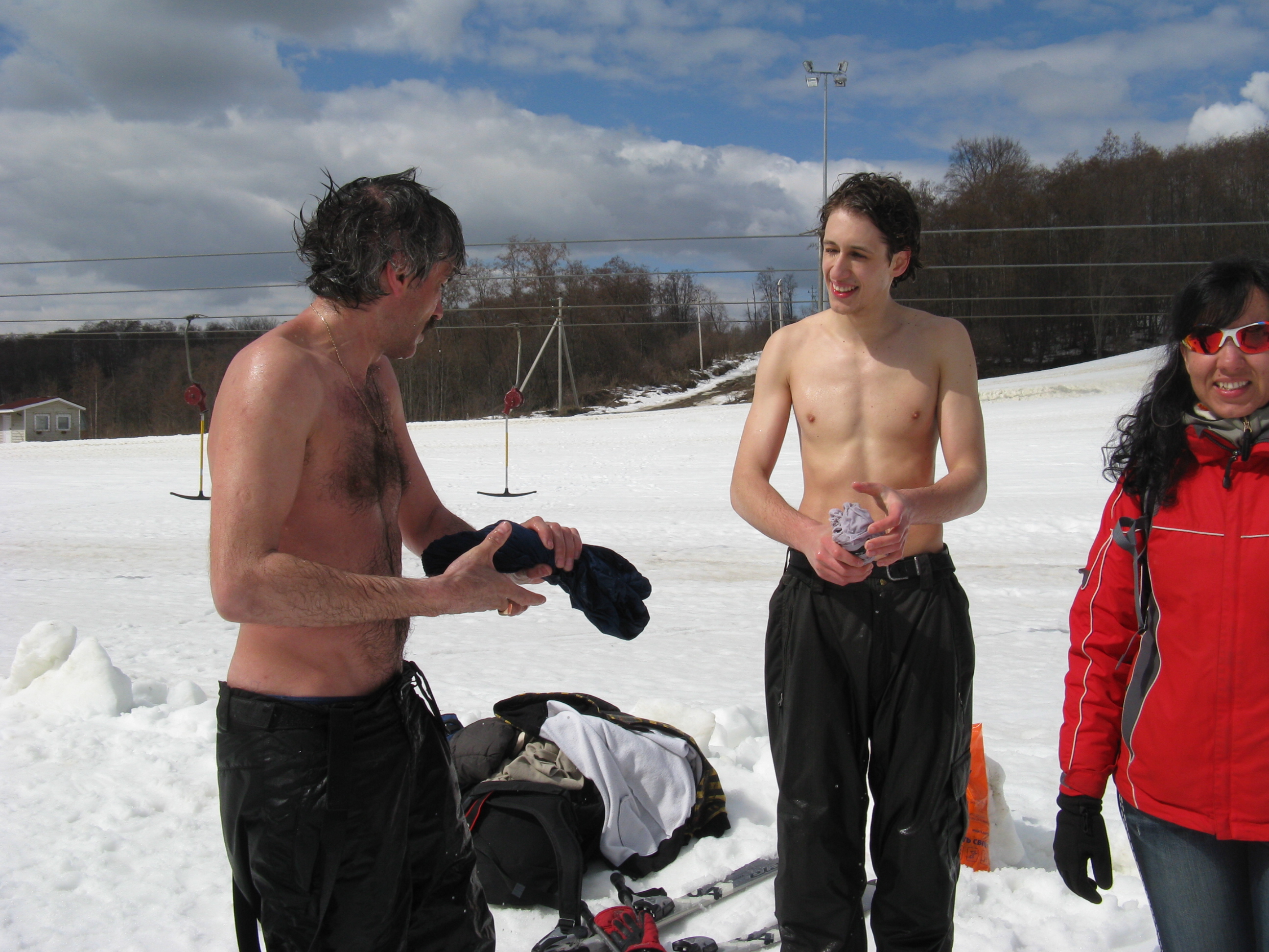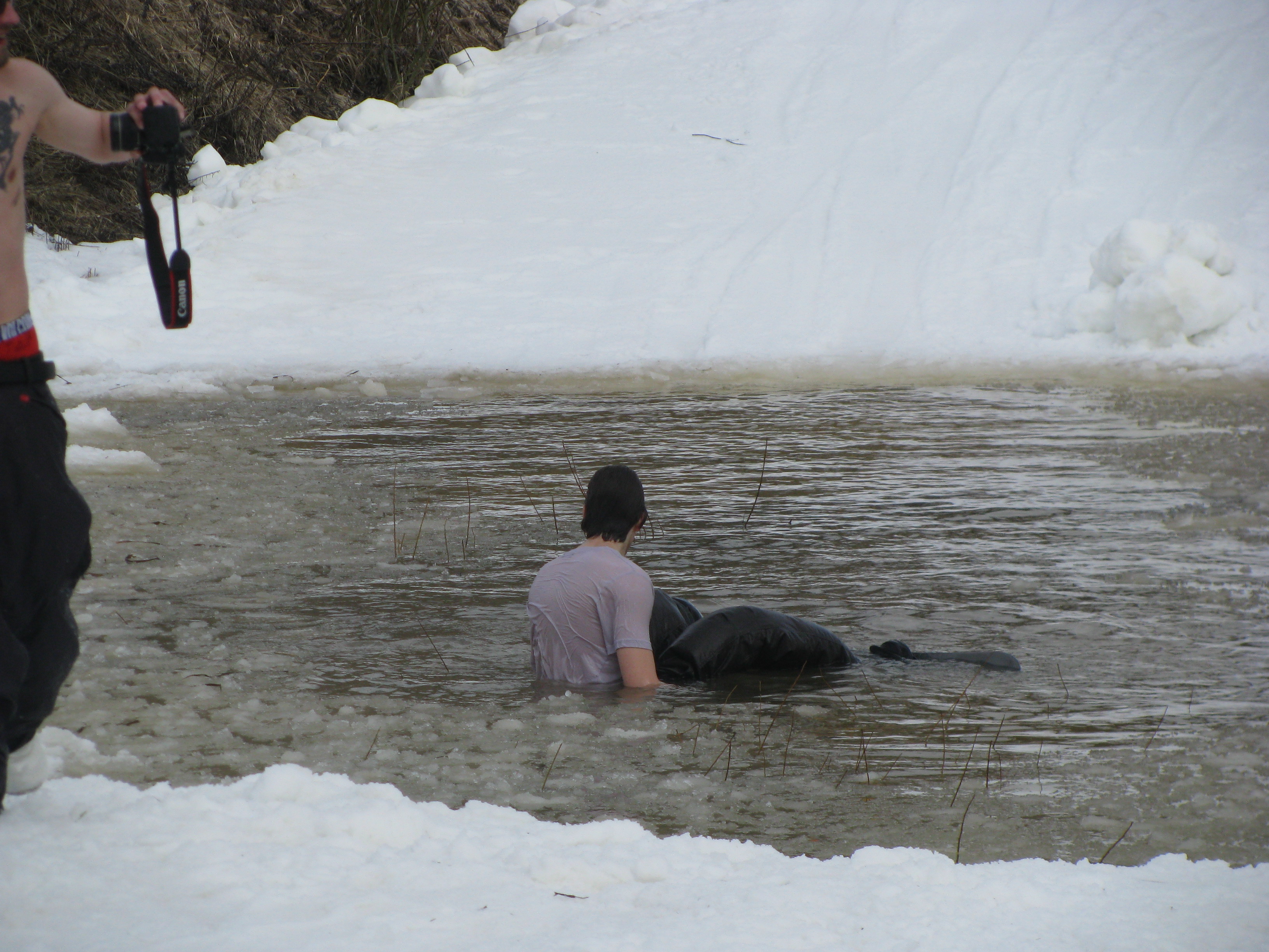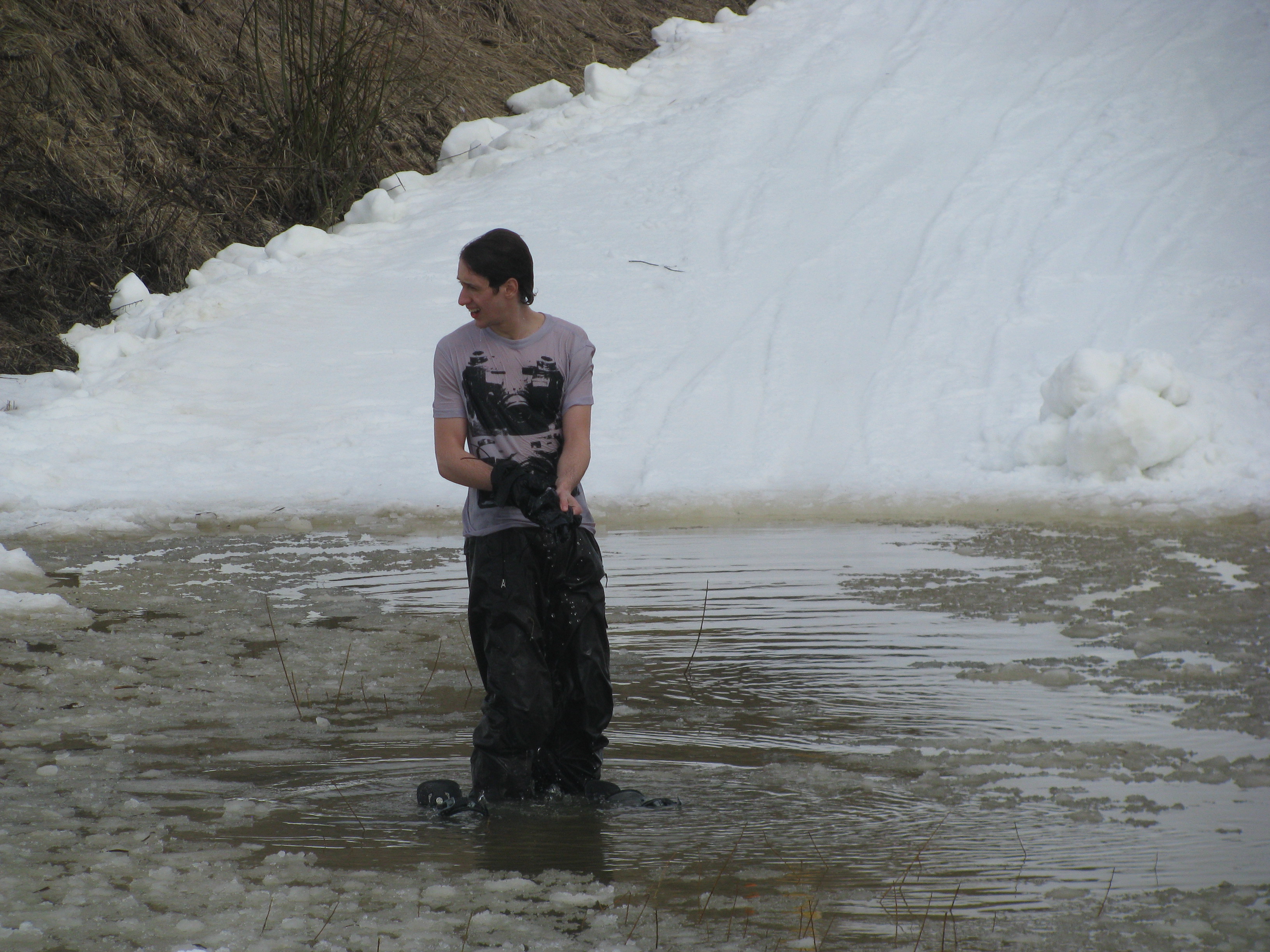 Был пиян практически весь день от нашей компании, весеннего солнца, нерастаявшего снега и огромной луже в которую мы и сигали . . .