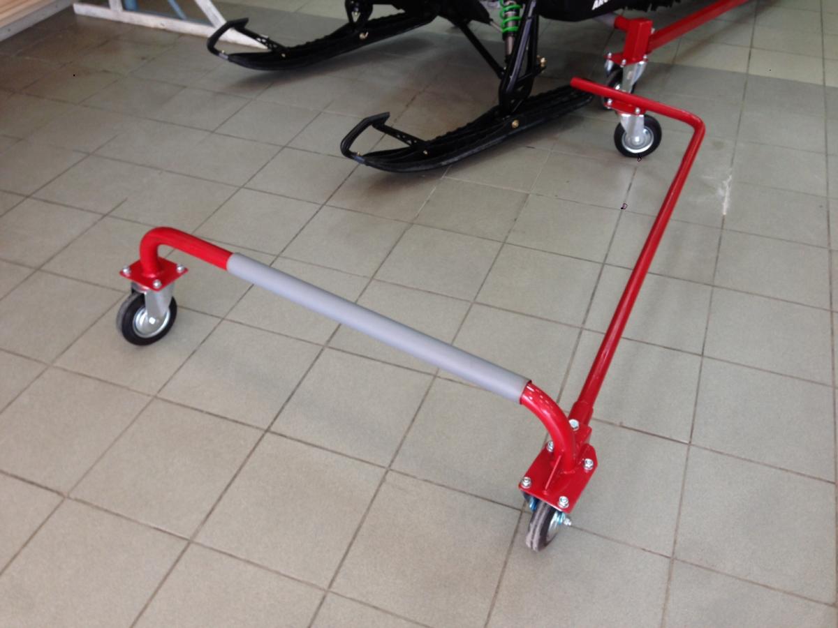 Представляет из себя складной рычаг на вращающихся колесах, предназначенный для подъёма и для легкого перемещения (через порожки и в углы) зимнего трактора по полу и бетону силами одного человека. Эта конструкция вывешивает для ремонта переднюю подвеску, разгружает задние пружины и амортизаторы при длительном хранении. Позволяет вымести снег, протереть грязь и воду с пола после поездок. Этот подъёмник практичнее и удобнее подкатных тележек.