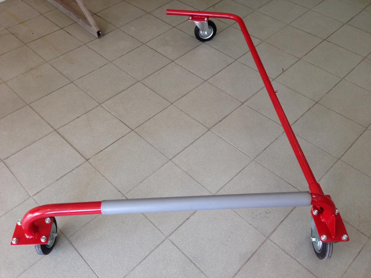 Большие 160 мм колеса более управляемы и устойчивы на неровностях. Пластиковая труба на поперечине облегчает подъем и удерживает тяжелую махину от соскальзывания. Отвечу на вопрсы 8-913-985-57-18. Сам использую такой и очень доволен.