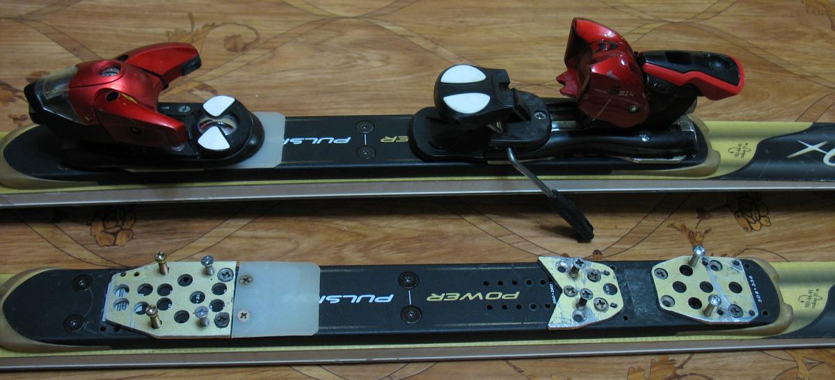 4. Если уж вообще ничего не получится найти, и есть умение-желание послесарить - поделюсь опытом установки креплений через самодельный интерфейсы. Опыт успешный. Примеры - на фото: Тироля на Атомике и Сало на Росси. Этот колхоз норм выдержал серьезные нагрузки.
