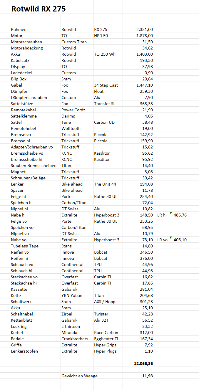 • Tatsächliches Gewicht: 11,93 kg (inkl. Pedale)