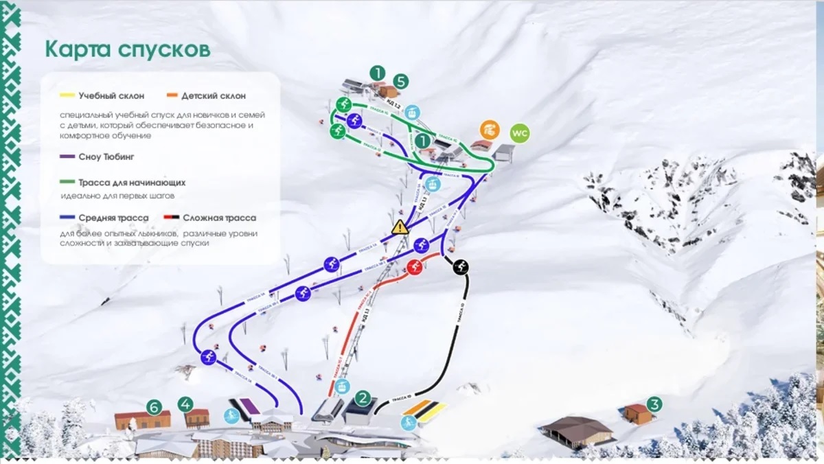 * Зеленые трассы (для начинающих): 4 410 м