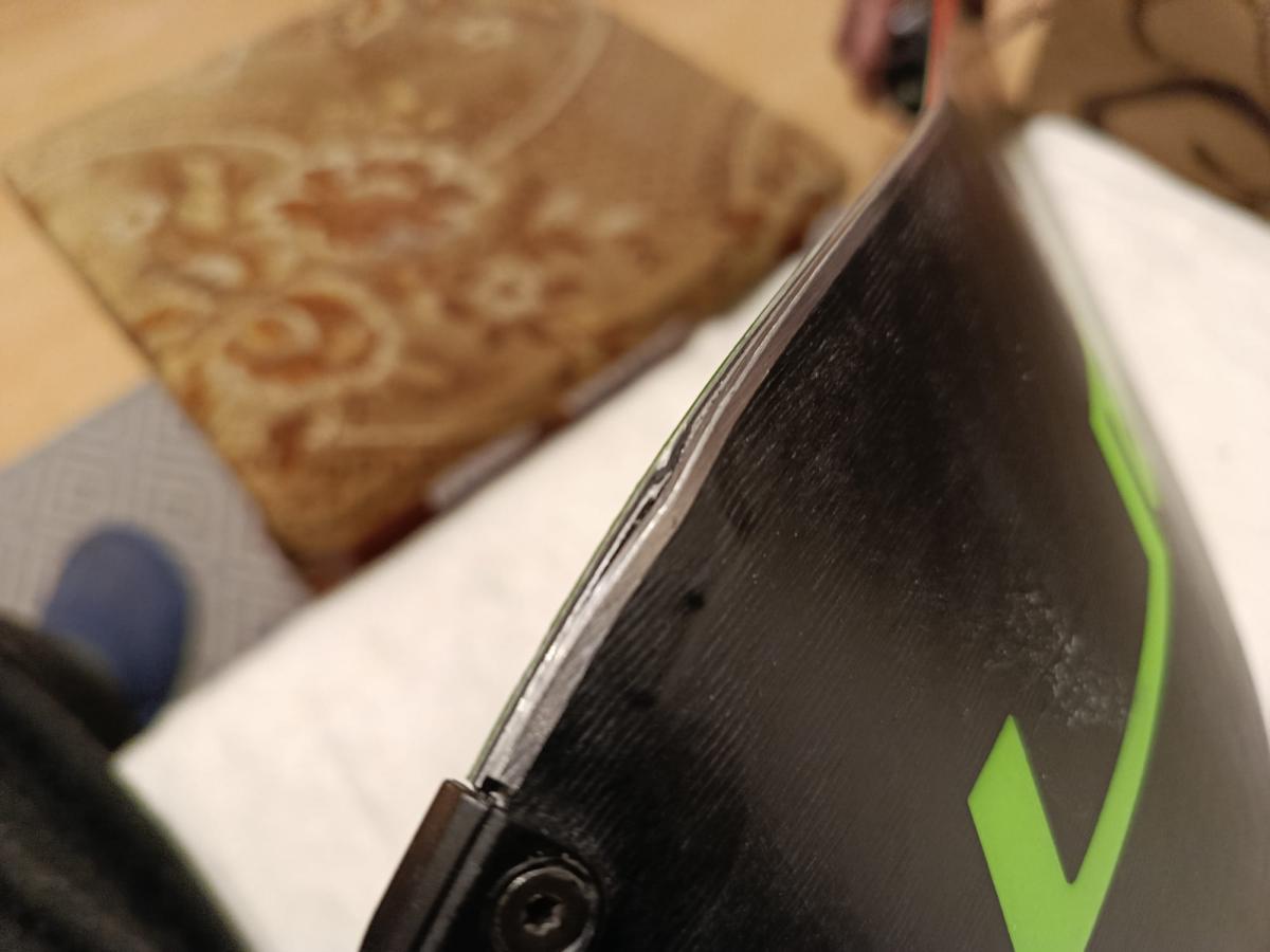 уважаемые знатоки , от удара расслоился носок. что можно сделать? на помойку , на заклепки , на эпоксидку - уже слышал. лыжи почти новые ELAN SLX.