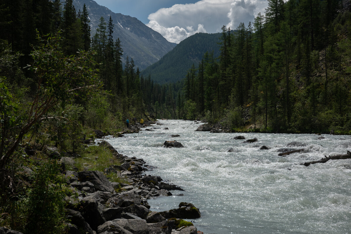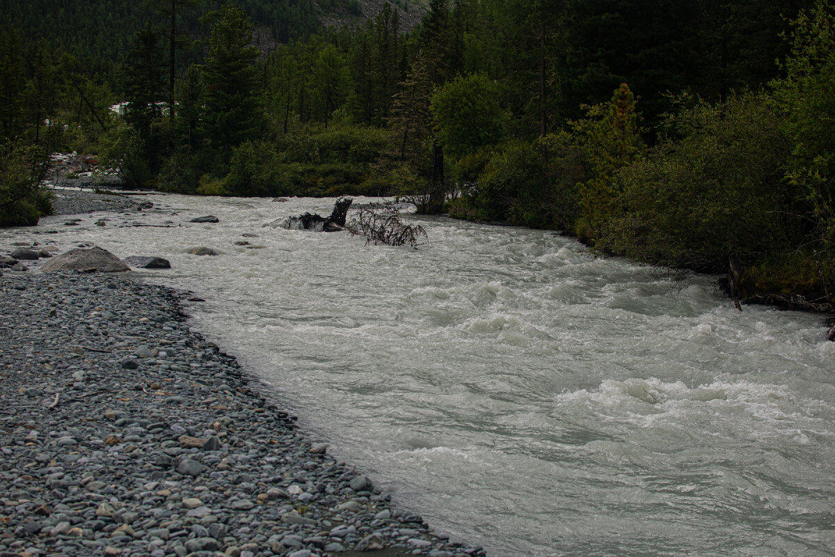 Забронированная с вечера заброска на 10:00 задержалась на 1,5 часа, приехавший к нам алтаец, в качестве компенсации проехал немного дальше. Как оказалось, сейчас вдоль Кучерлы строят дорогу к строящимся туристическим базам выше по течению, планируют чуть ли не до самого Кучерлинского озера построить дорогу. До Кучерлинского озера добраться не сложно, тропа не сложная, есть заброска на лошадях до озера либо частично на машине - сейчас можно заказать заброску (на УАЗ) до стоянки с кафе и баней на расстояние 22 км от Тюнгура.