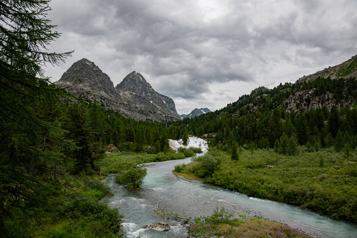 Этот участок труднопроходимый, местами "тропа" это просто направление вдоль реки. Очень много участков с курумниками различной величины, завалов деревьев, необорудованных бродов через ручьи/реки. "Тропа" зажата между озером/рекой и крутым склоном, который местами состоит из насыпи живых камней, по которым нужно идти аккуратно, чтобы не съехать в озеро/реку. На Дарашколь не так много ходит туристов, массовые коммерческие группы туда не ходят.