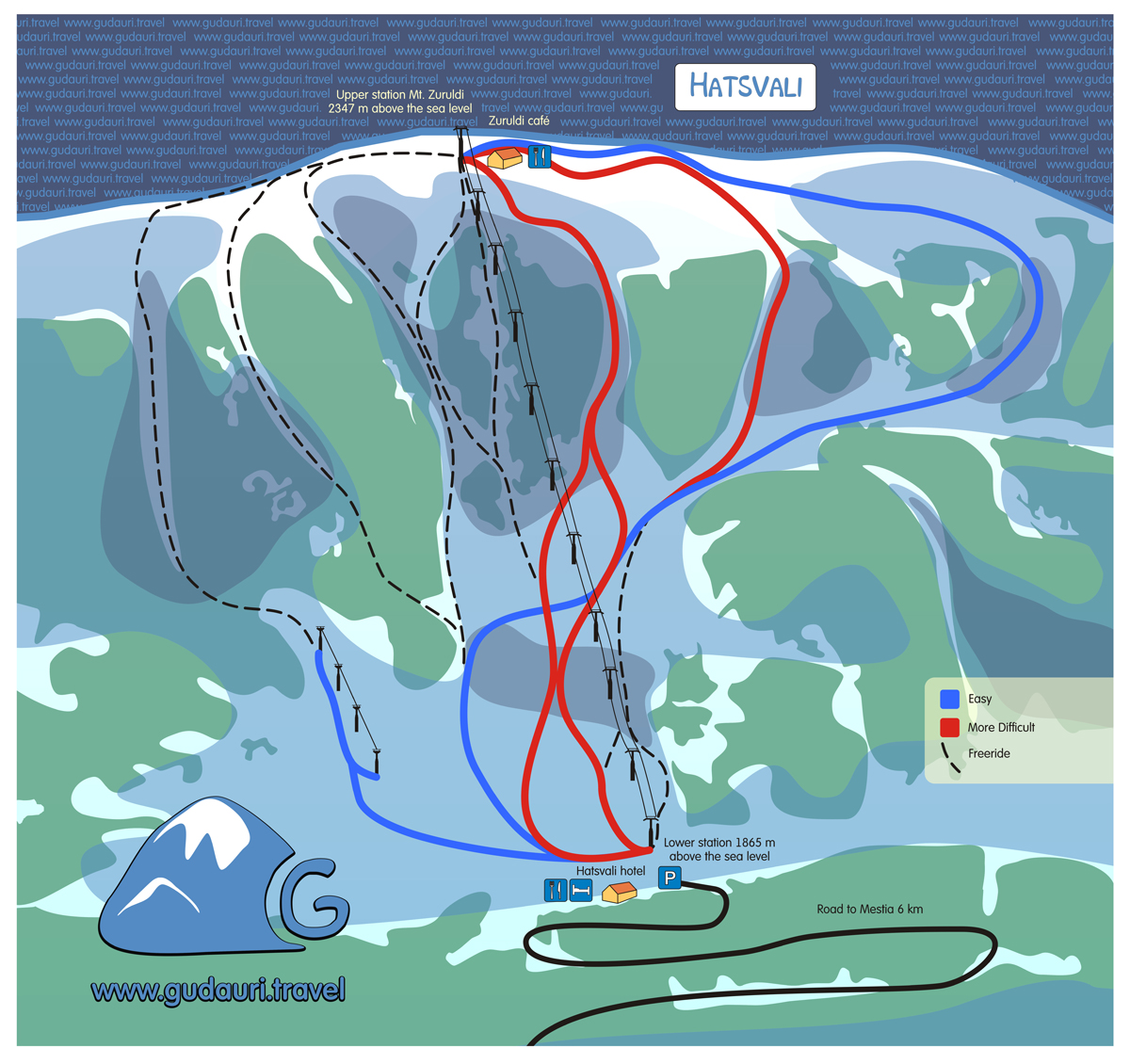 Наличие гостиниц на курорте: В непосредственной близости от подъемников нет гостиниц. Гостиницы есть в Местиа и Латали.